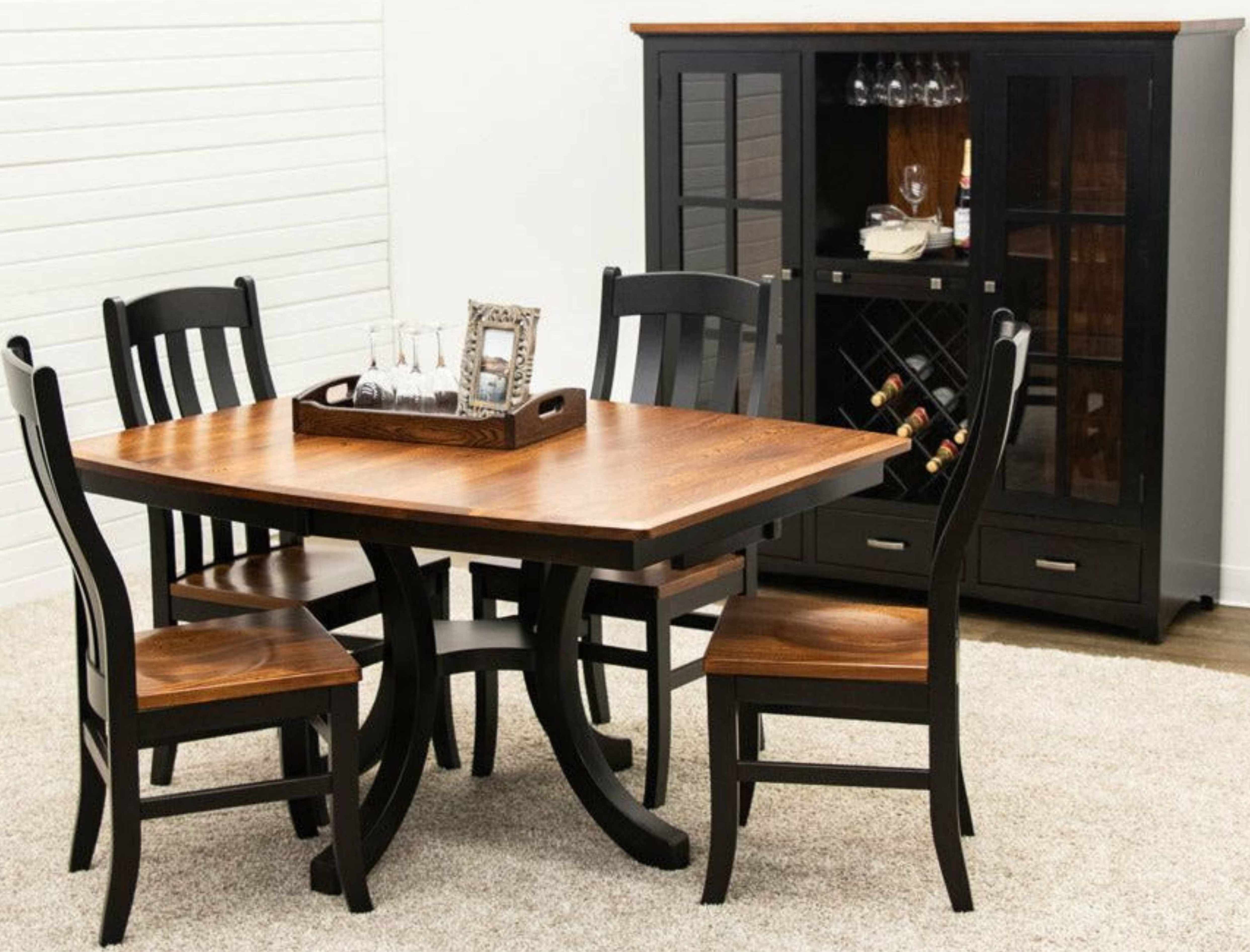 Carlisle Single Pedestal Extending Dining Table with Black Pedestal Base | M-EB&E-MC