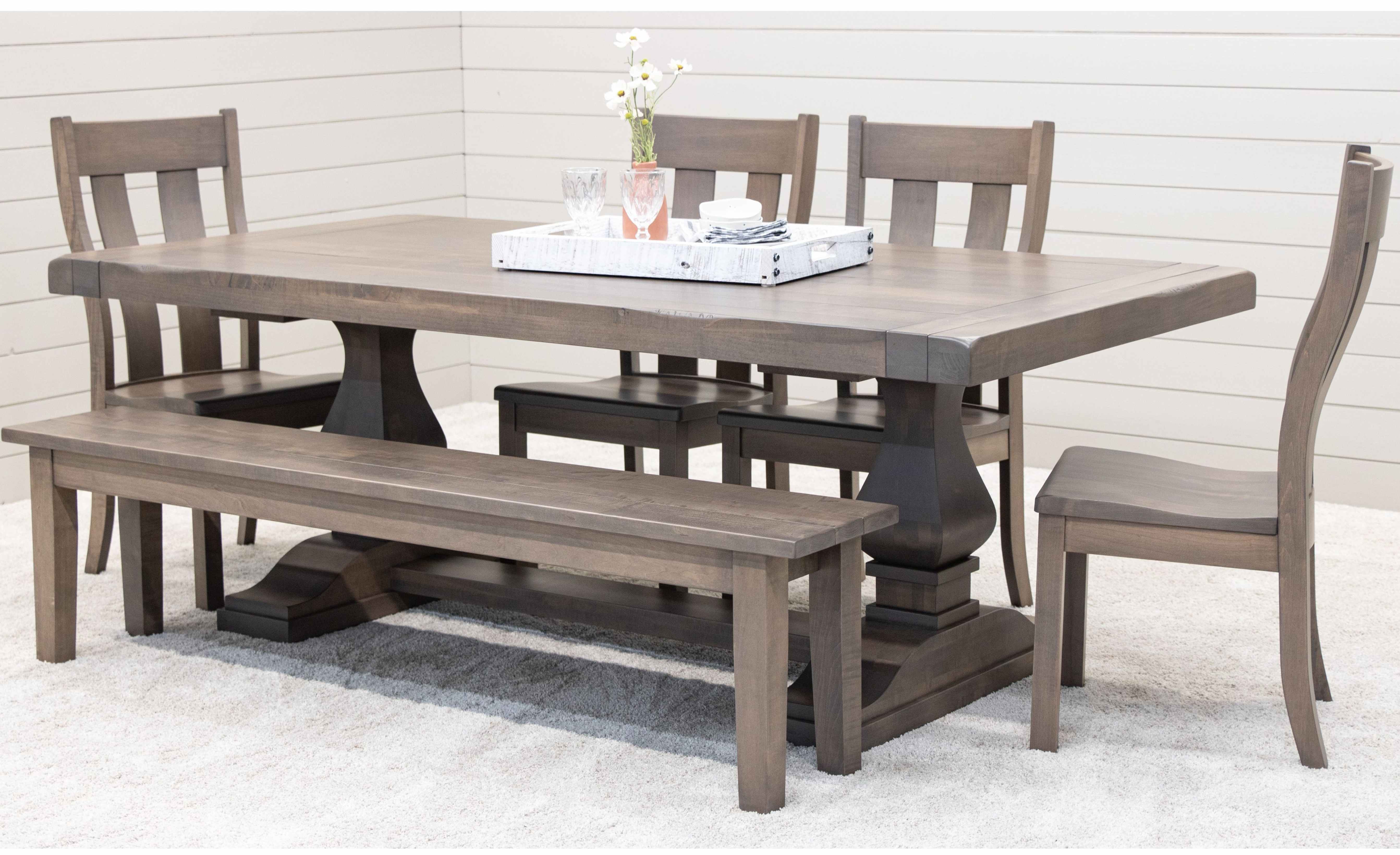 Every dining table is available in your choice of wood type and stain color. Wood options include Red or White Oak, Maple, Cherry, Hickory, Elm, and Walnut wood.