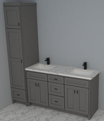 Having custom, wooden bathroom cabinets built means no sacrificing on beauty, quality or functionality! Every single vanity and linen cabinet is made from scratch, right here in Holmes County, Ohio, by our Amish artisans using solid, local hardwoods like Maple, Cherry, Elm, Hickory, and Red or White Oak. All layouts can be adjusted to better accommodate your bathroom space and existing plumbing hookups. The matching linen cabinet can easily be reversed to fit the right side of any size vanity instead of the left, at no additional charge. Our Westbrook bathroom collection features overlay style doors and drawers, with inset panels that pair well with classic mission furniture and home styles. All drawers are built using dovetailed construction and completed with soft closing drawer slides. The doors open to reveal solid wood, adjustable shelves. Matching framed and beveled wall mirrors in custom sizes are available upon request. This collection is priced using Brown Maple wood, with our standard stain or paint color options, always finished using a catalyzed conversion varnish. We also welcome requests for paint colors to match any Sherwin Williams or Benjamin Moore color you may already have in your home. For pricing on additional wood options and to request color samples, please contact us today at Dutch Craft Furniture. Our design team is waiting to help you create the relaxing, spa-like bathroom you deserve!