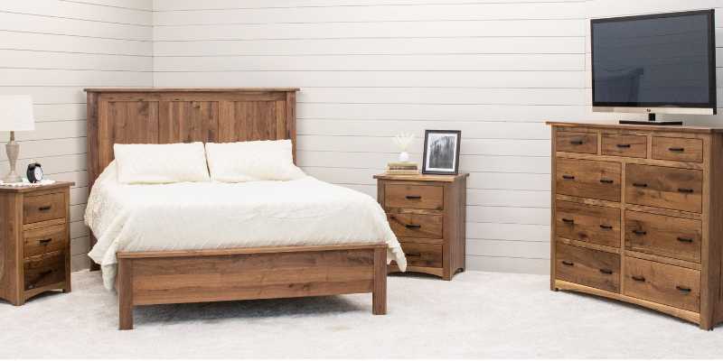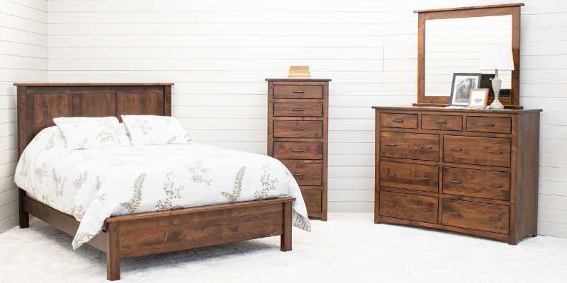 Create the bedroom space you deserve with the addition of solid wood bedroom furniture from Dutch Craft Furniture. No veneers ever! Our complete line of beds, dressers, armoires, chests, and nightstands are made to order in your choice of solid local hardwood. Wood options include Red Oak, White Oak, Maple, Cherry, Hickory, Elm, and Walnut wood. Local craftsmen build each piece one at a time and welcome custom requests. For more information about our solid wood bedroom furniture, contact us at Dutch Craft Furniture today!