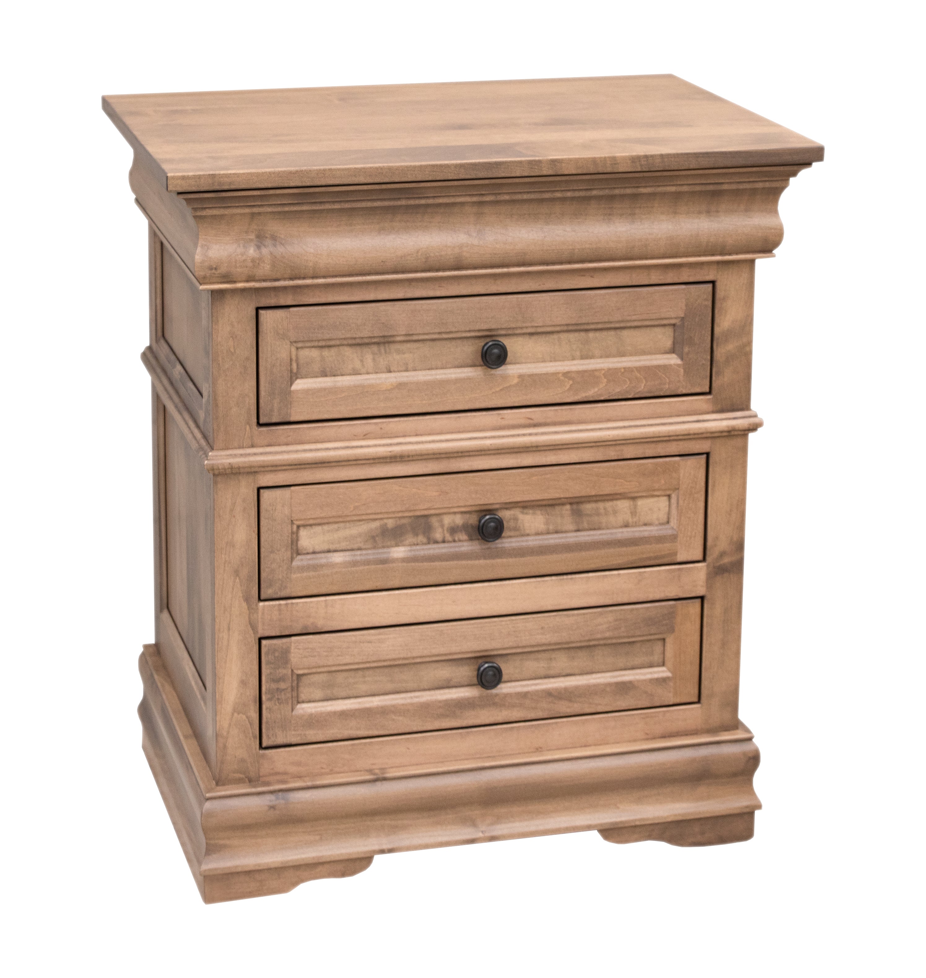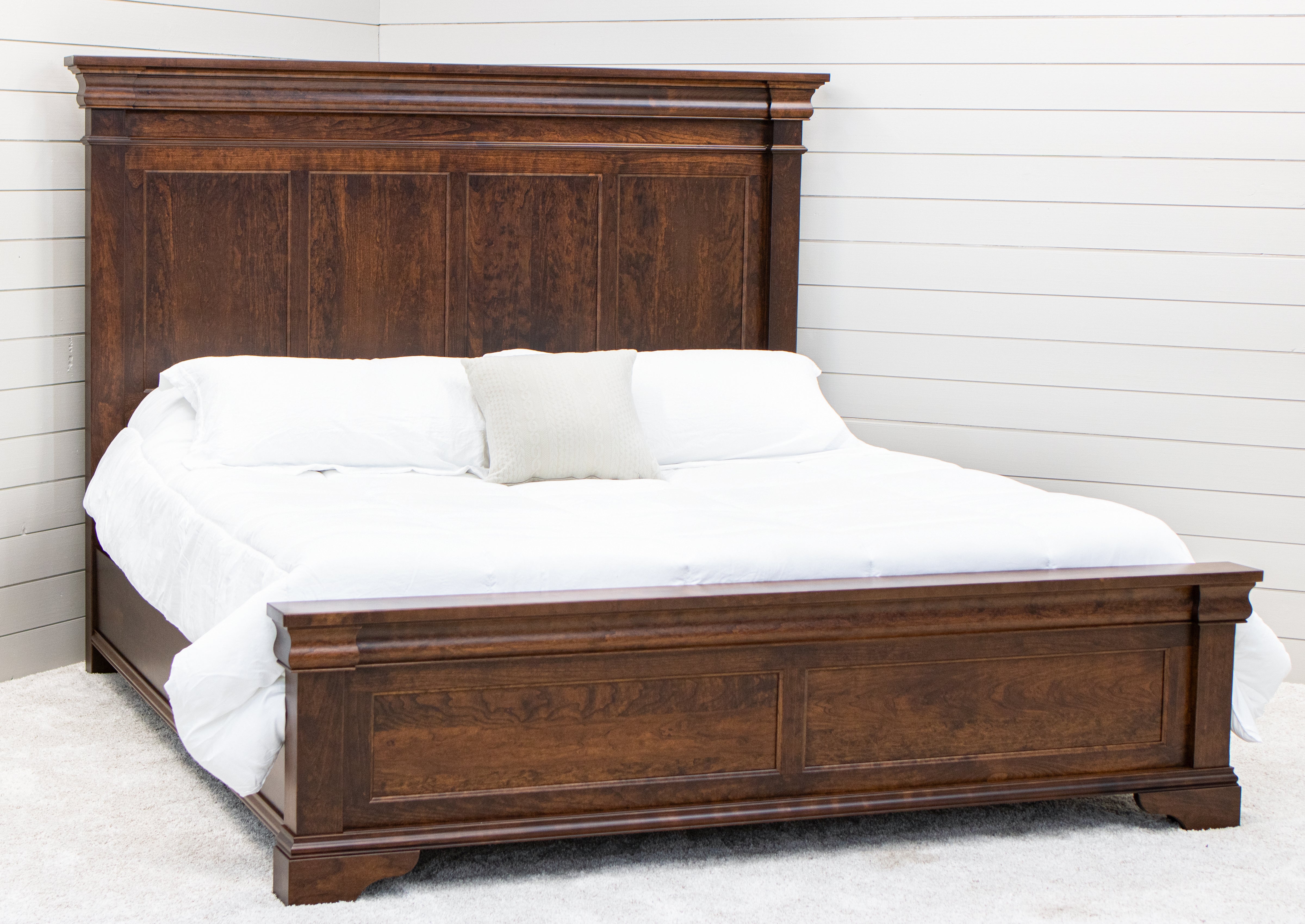 The classic design of the set is also beautiful in a traditional style bedroom. Adding a warm stain color or darker wood tone instantly adds drama and rich, luxurious impact. The height of the headboard creates a stunning focal point. Add hardware in your chosen finish to complete the vision.