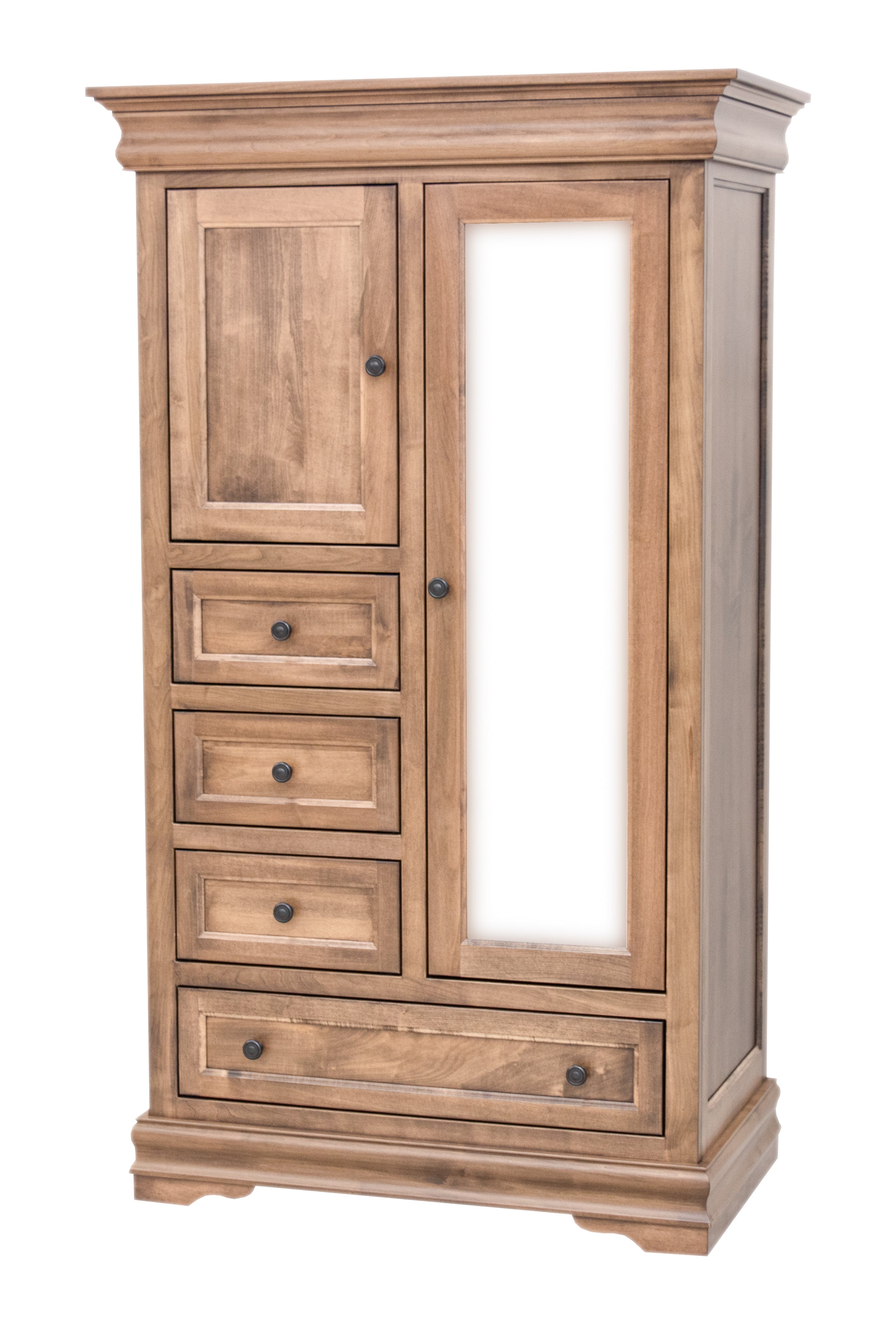 The set includes a variety of storage solutions including the armoire, chest of drawers and chiffonier.