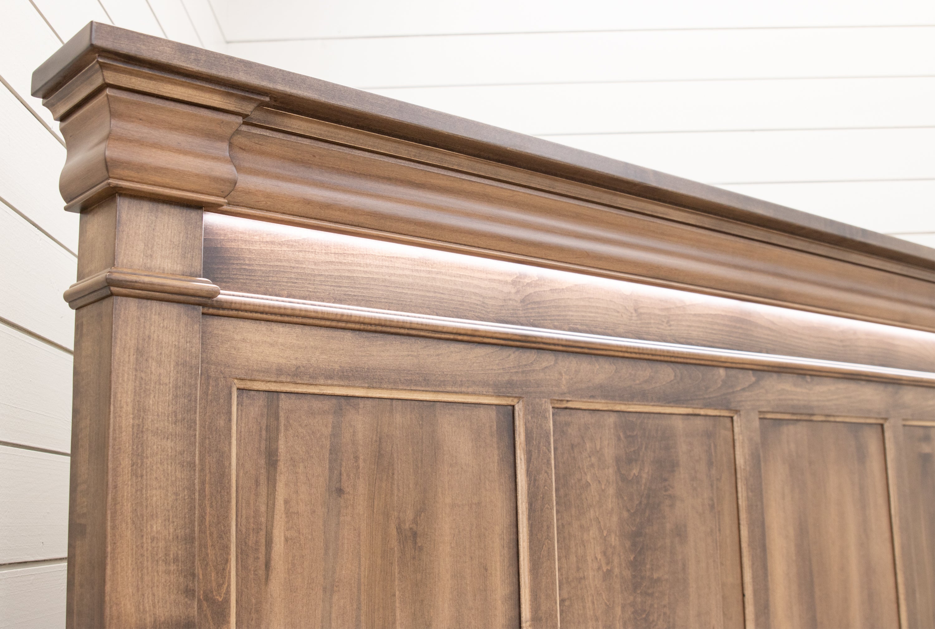 The tall stately headboard is best suited as a king-sized bed; however, we can also build it to accommodate queen or full size. Standard height of the headboard is 64", creating a perfect focal point in large open suites.