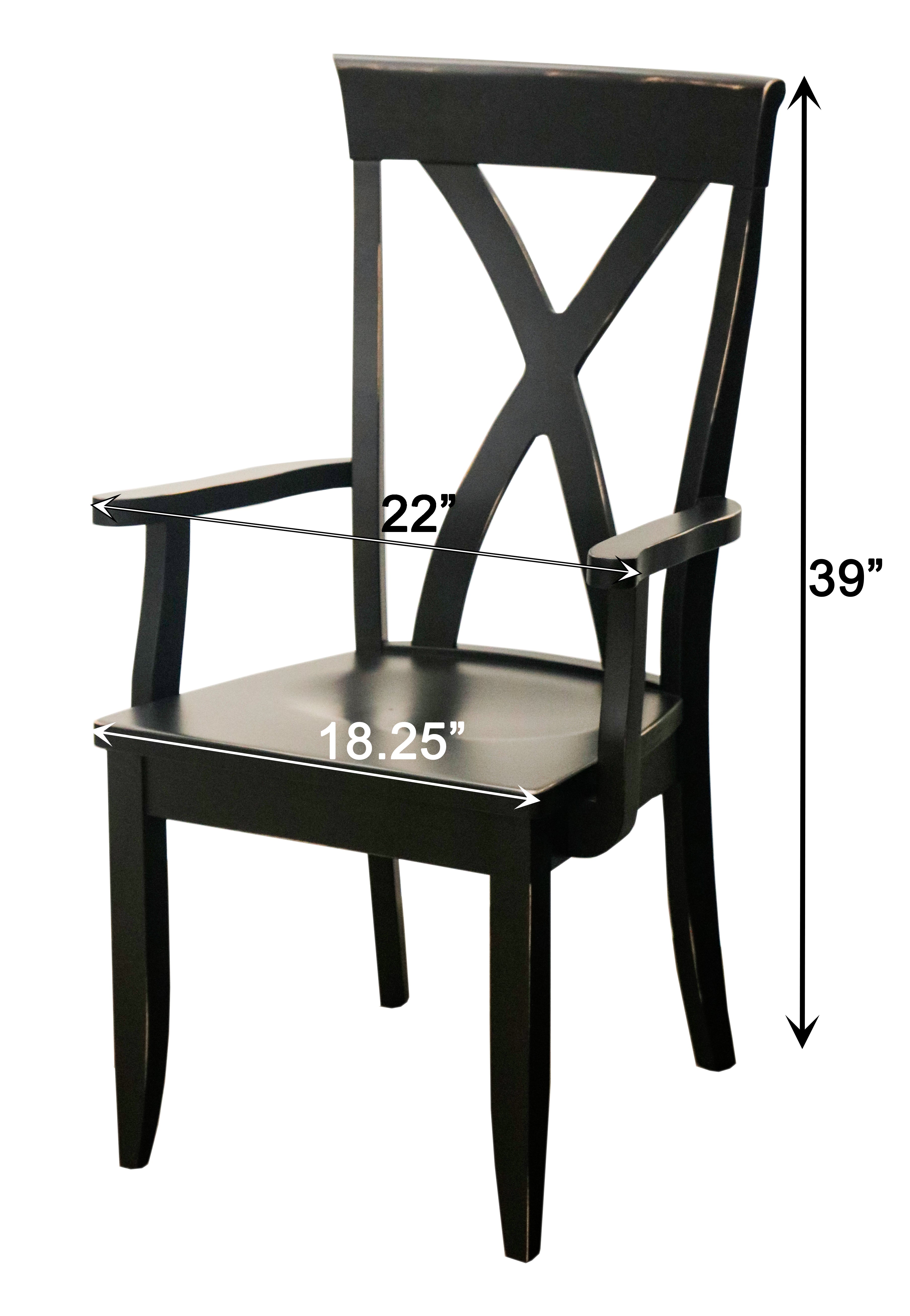 Brooke X Back Black Maple Wood Arm Dining Chair | EB Dimensions