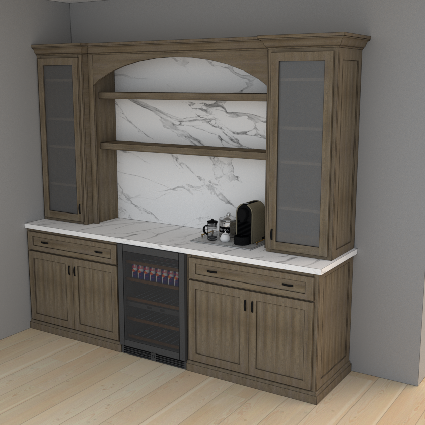 For all custom coffee bar cabinets, we create a detailed 3D rendering of your space. View the final layout and review dimensions, making sure that the project will function as you wish.