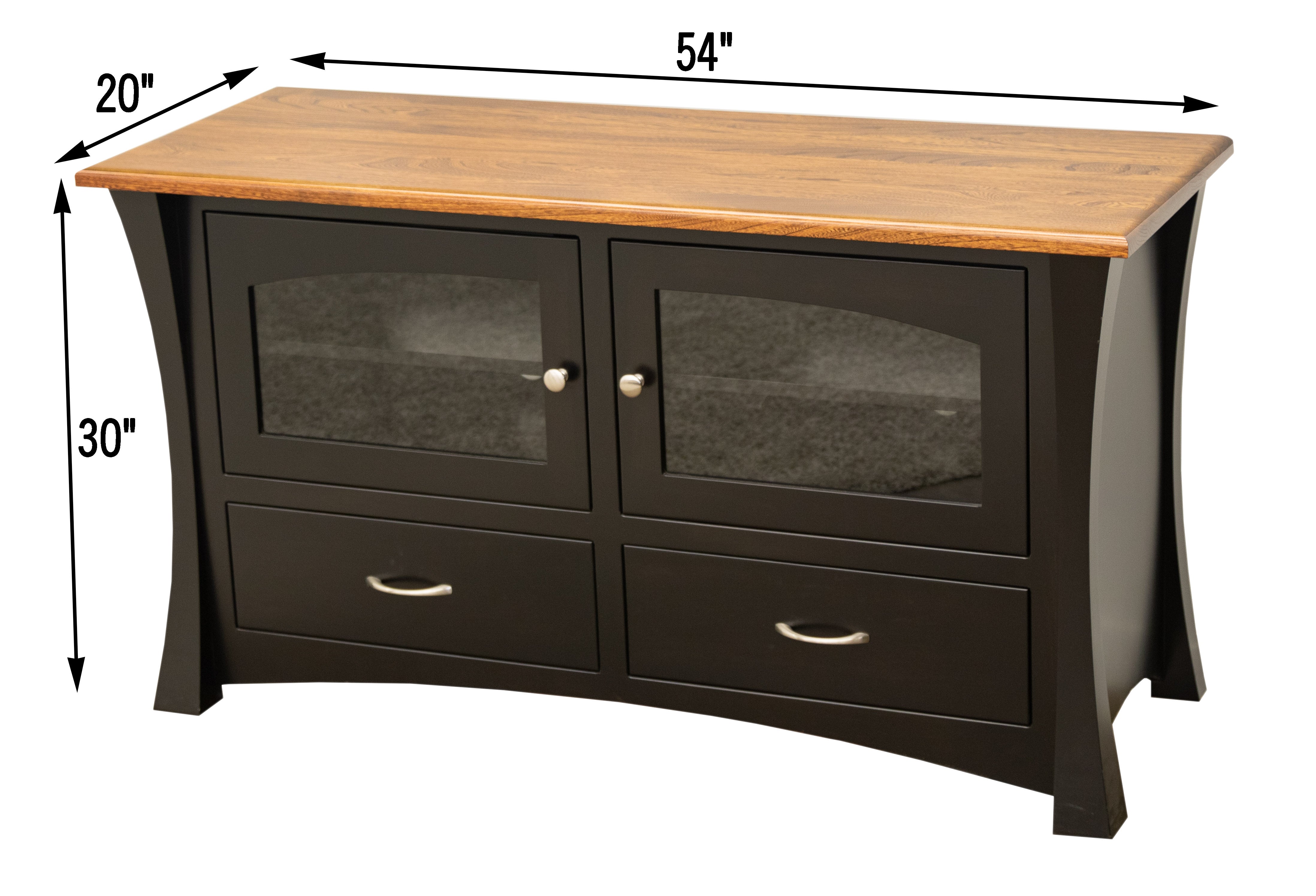 The Brooklyn TV Console features curved legs and rounded edges along the top. The piece is built with solid wood by Amish craftsman, made to be sturdy and long lasting. Order the tv console in your choice of wood and color. For more details, contact a member of our team.
