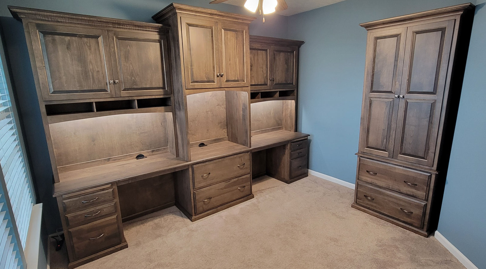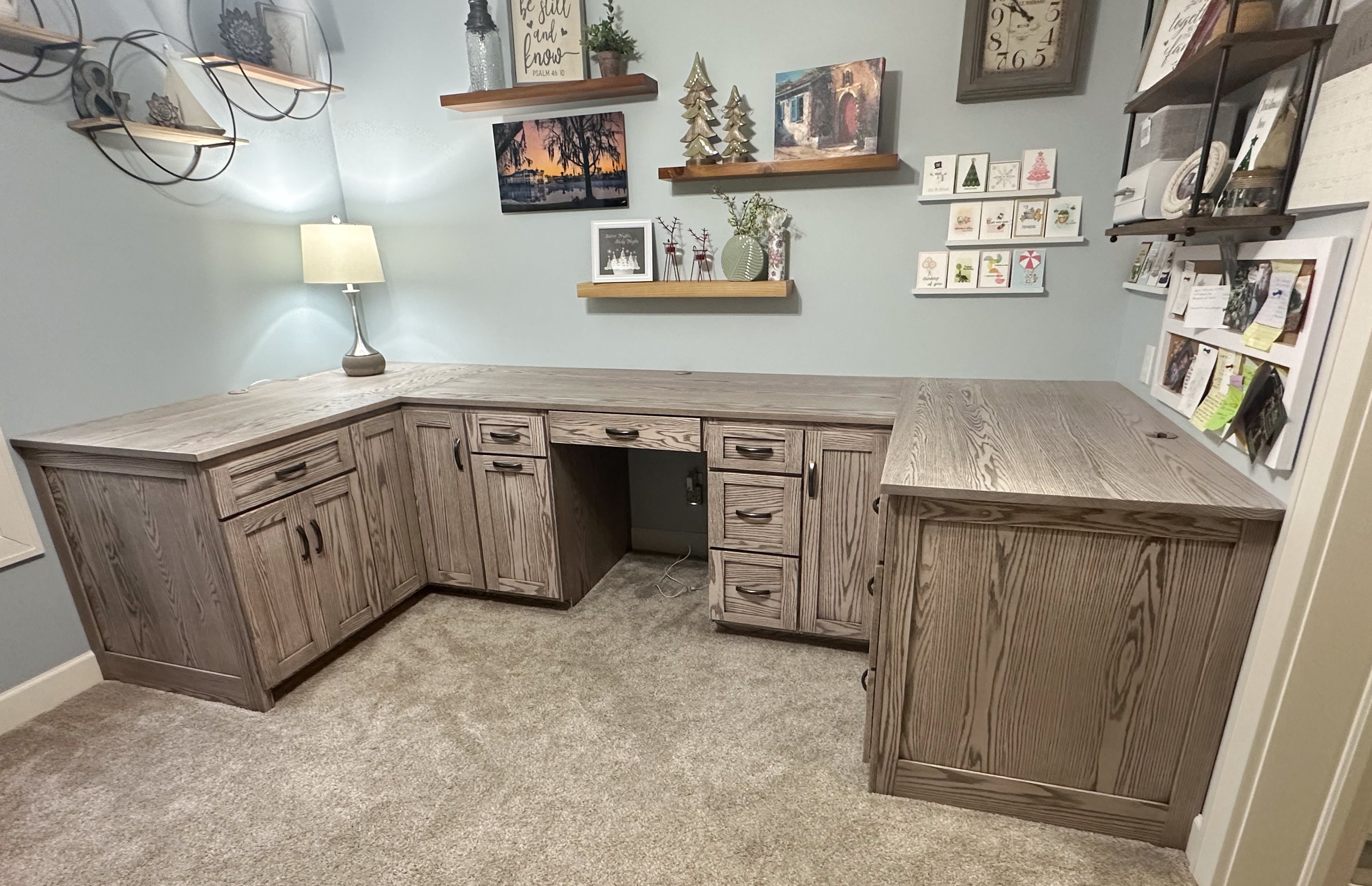 In addition to allowing customizations to our standard solid wood desks, we also build completely custom desks. Find inspiration online or create a sketch of the perfect layout you envision for your home office desk. Our team will take care of the rest.
