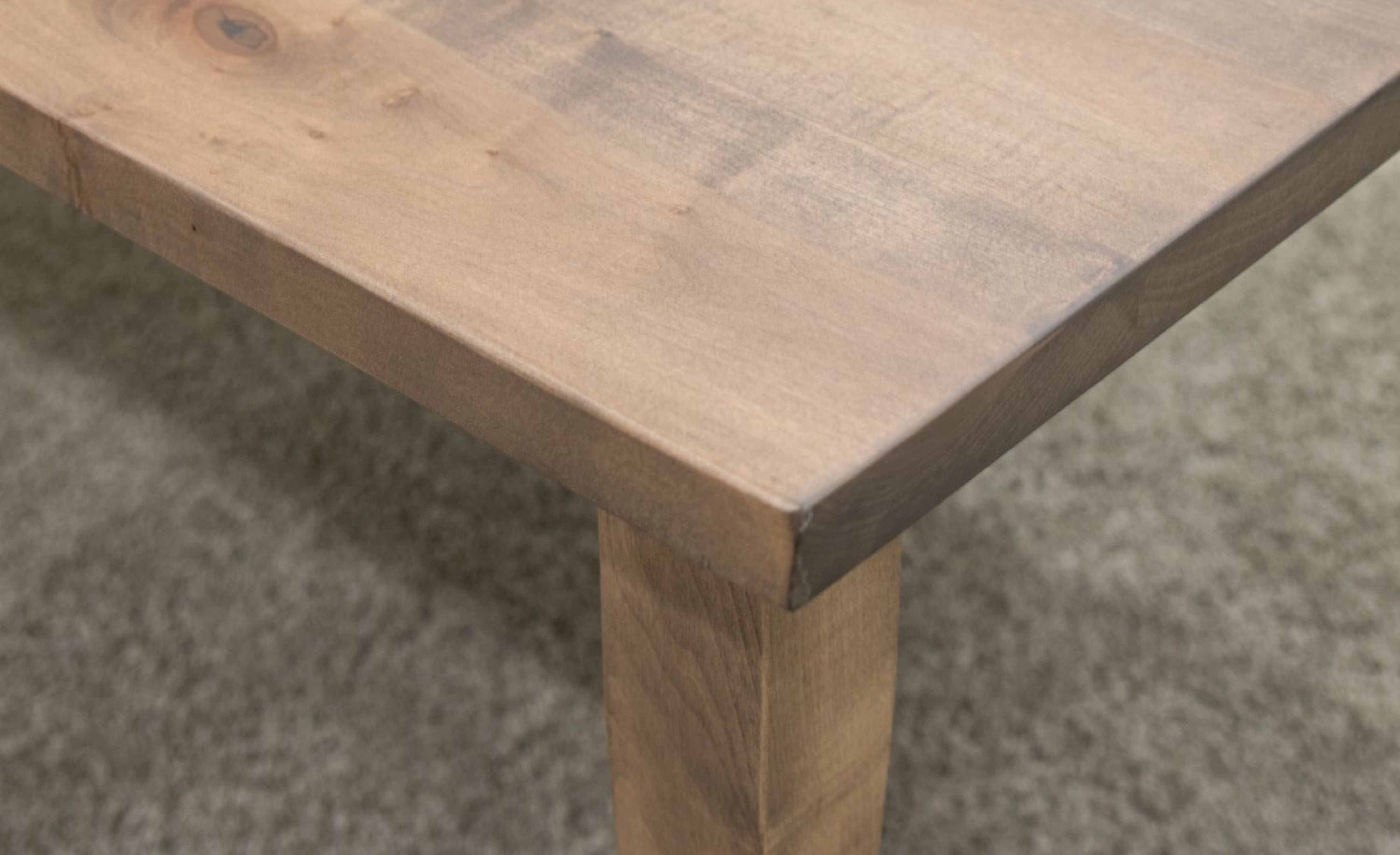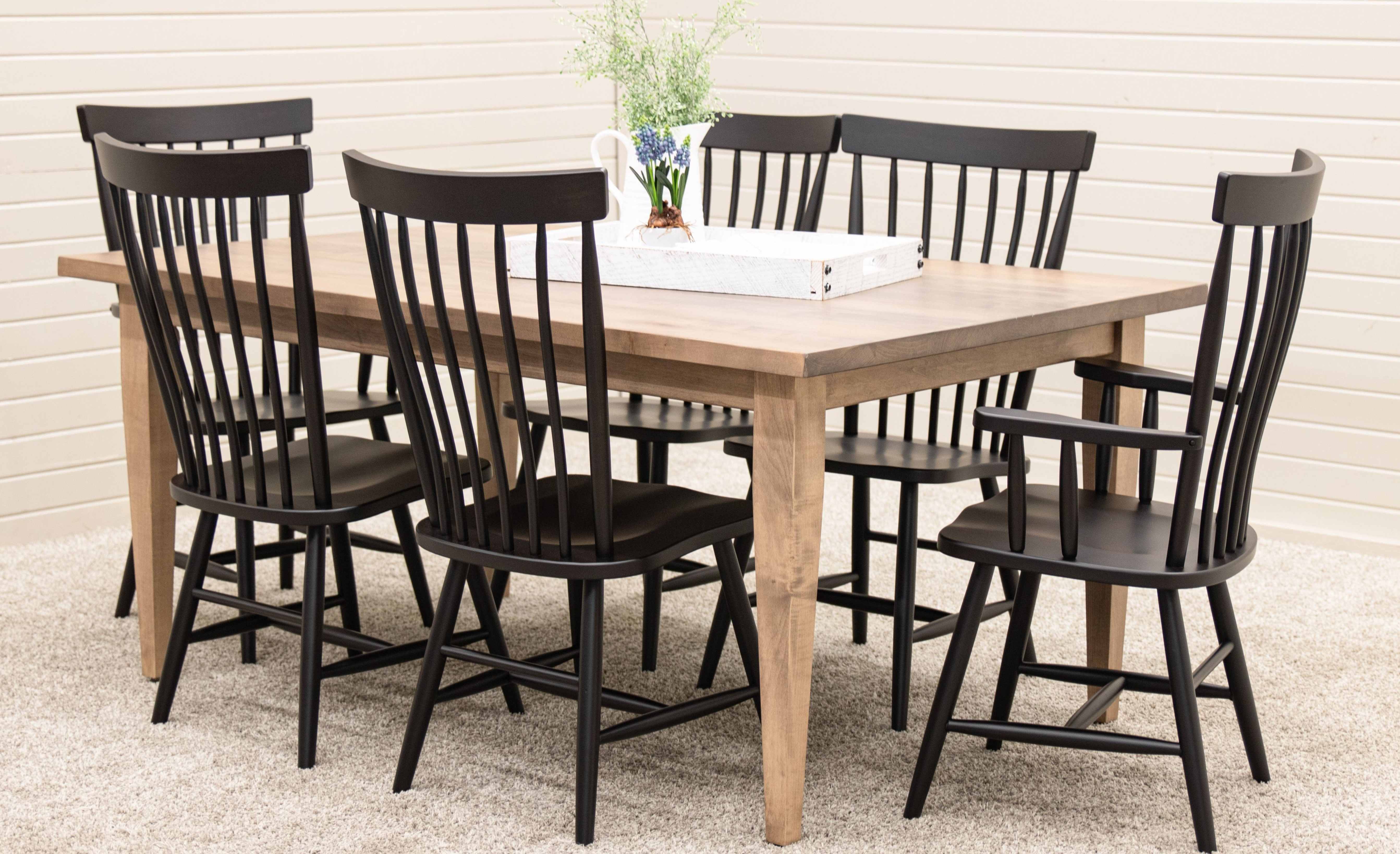 Every dining table is available in your choice of wood type and stain color. Wood options include Red or White Oak, Maple, Cherry, Hickory, Elm, and Walnut wood.