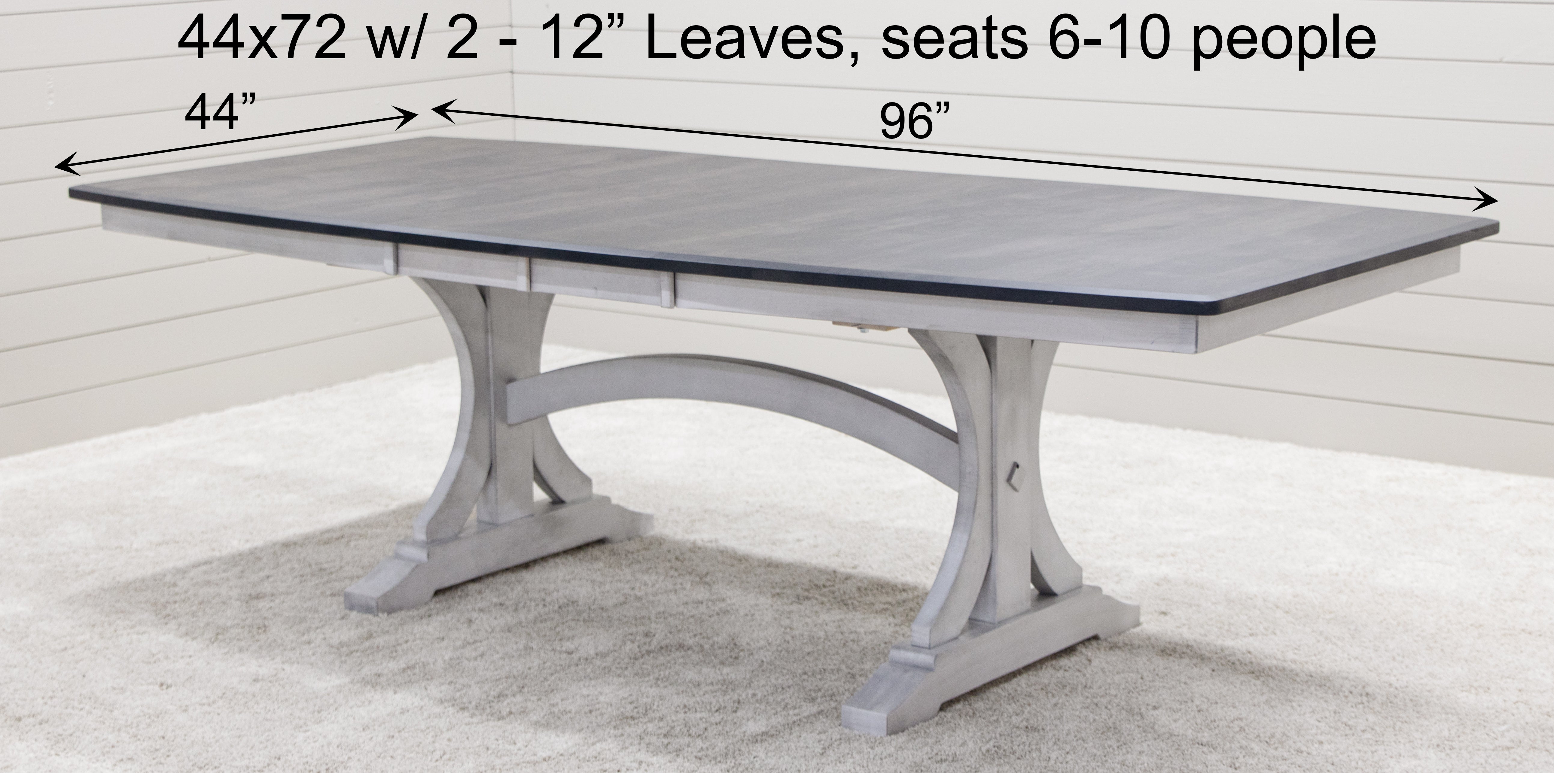 Every dining table is available in your choice of wood type and stain color. Wood options include Red or White Oak, Maple, Cherry, Hickory, Elm, and Walnut wood.