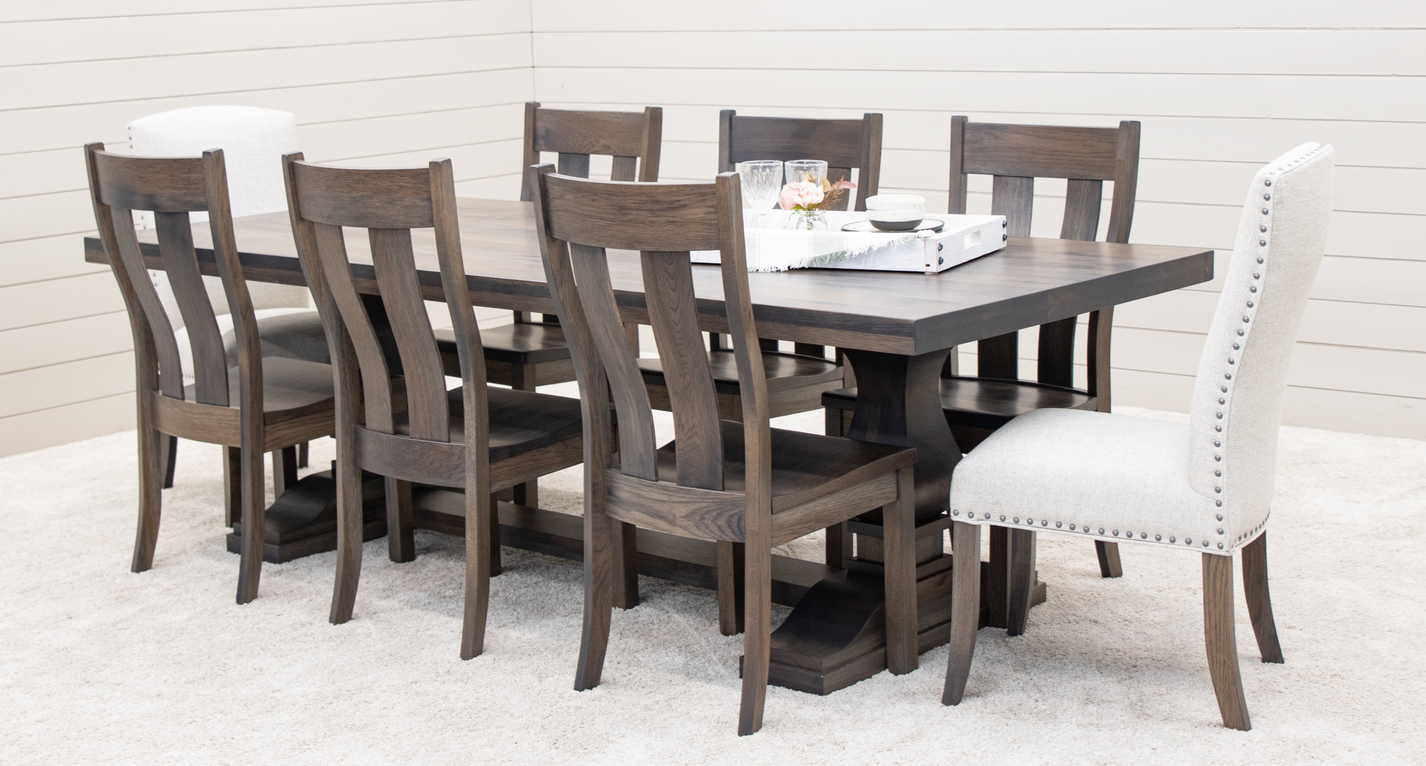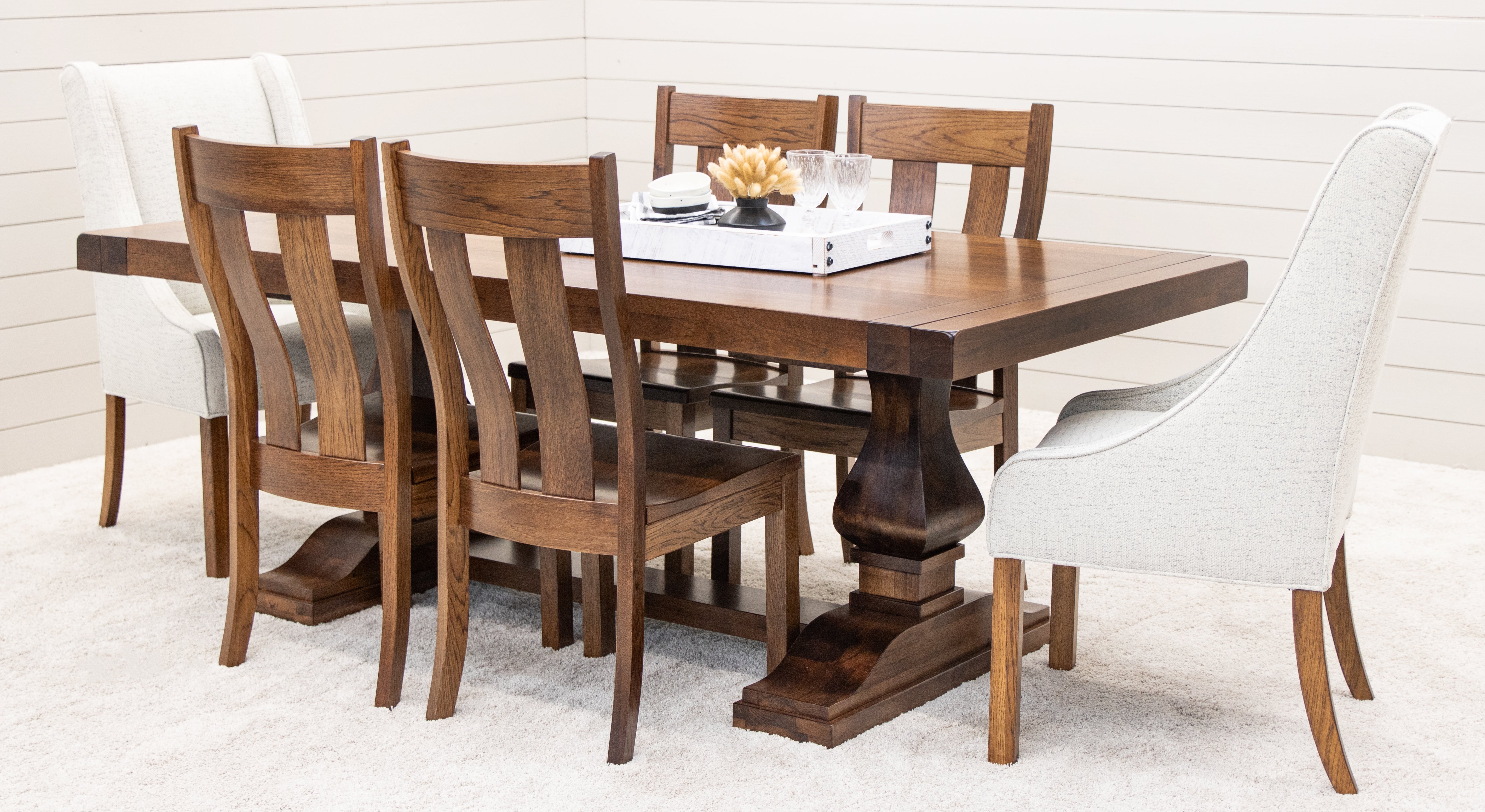 a combination of the hillside and alberta dining table (hillside pedestal with alberta style feet)