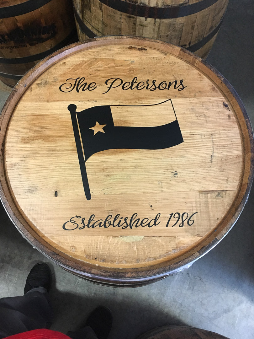 Whiskey Personalized Rustic Quarter Sawn White Oak Double Barrel Pub Table | GB