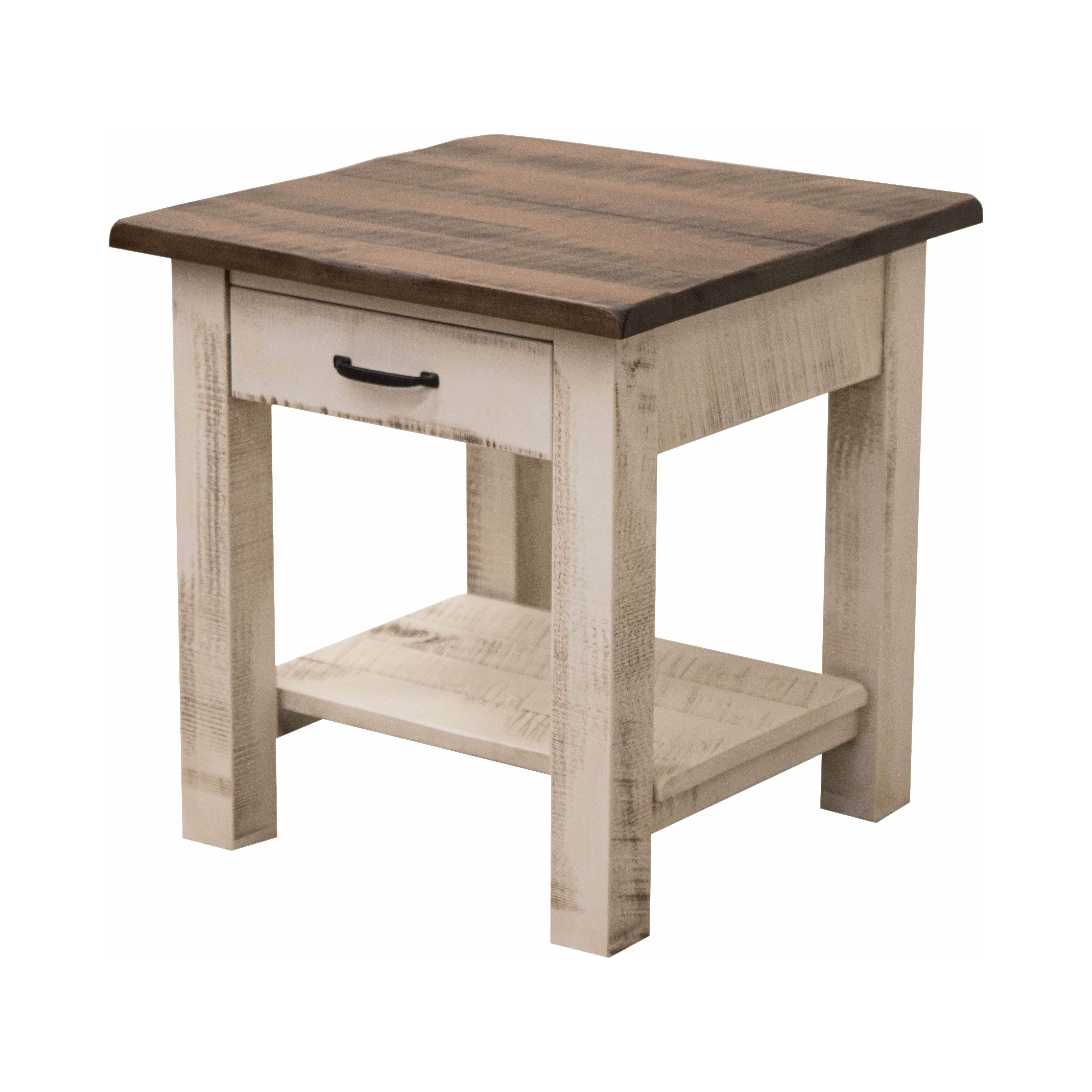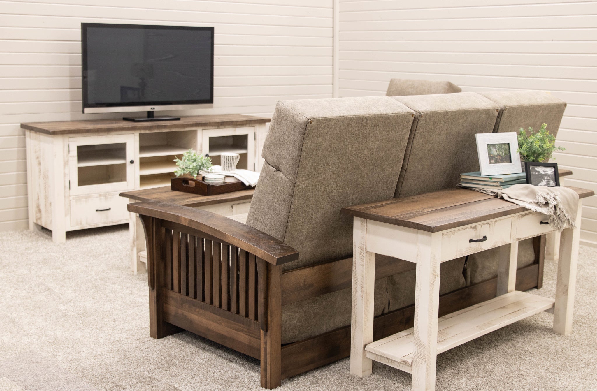The Milltown Collection is a rustic style with plank distressed tops and roughsawn bases.