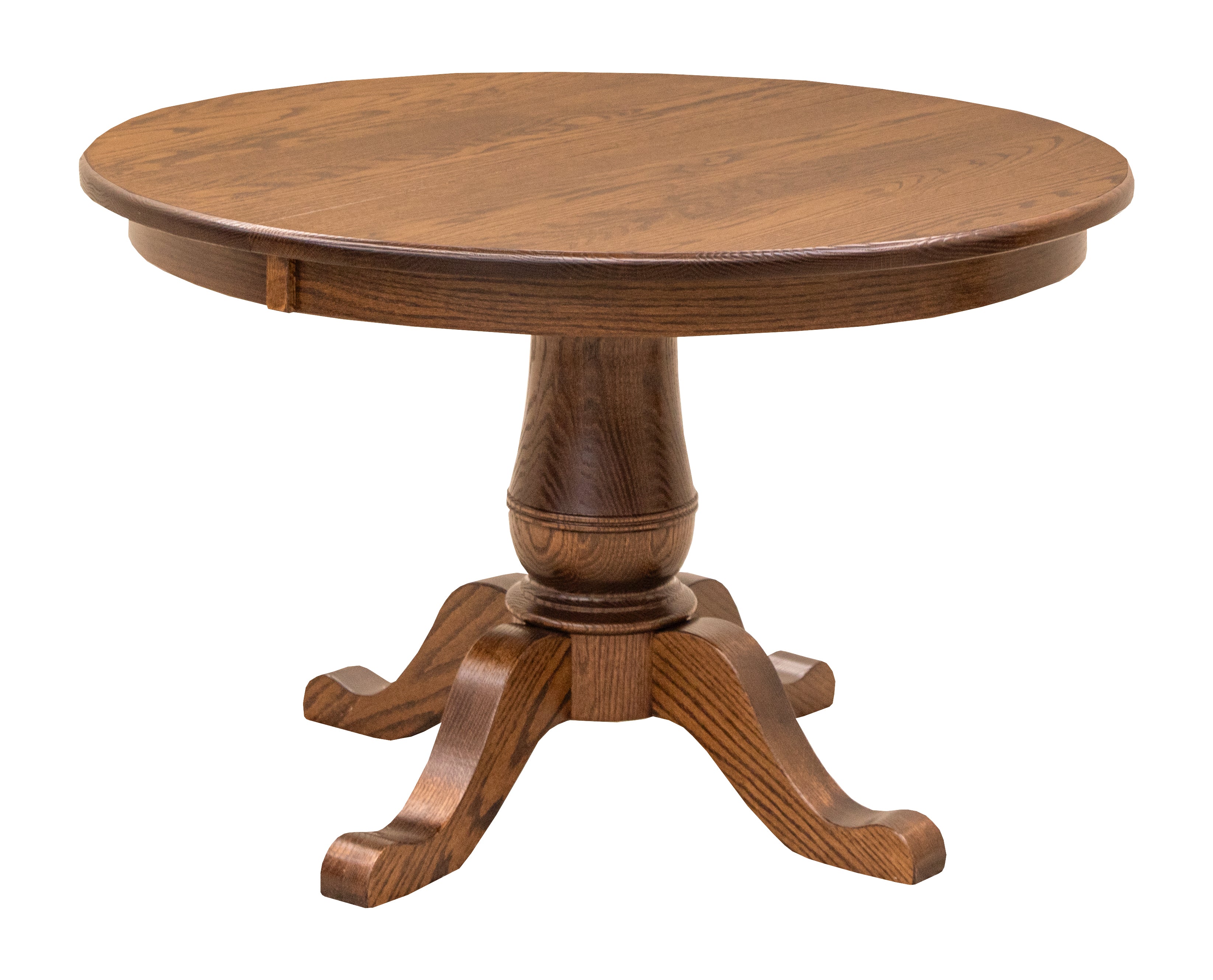 Common round Oak table sizes include 36", 42", 48", 54", 60", 66", and 72" round. The size options available varies by table style. Our Amish furniture makers carefully test each pedestal base to ensure a strong, sturdy table.