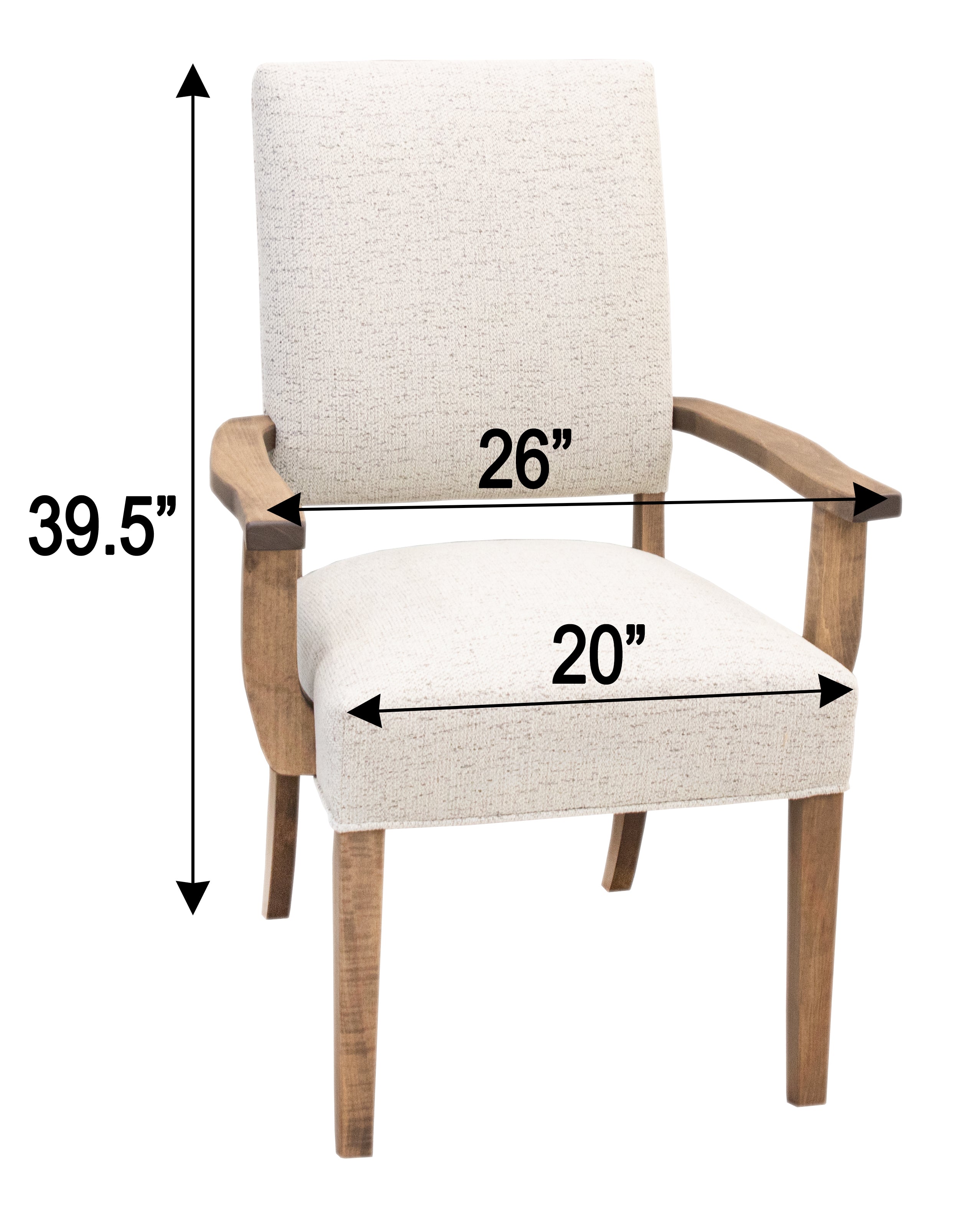Parsons Open Back Upholstered Dining Chair with Wood Arms | 22-63 Dimensions