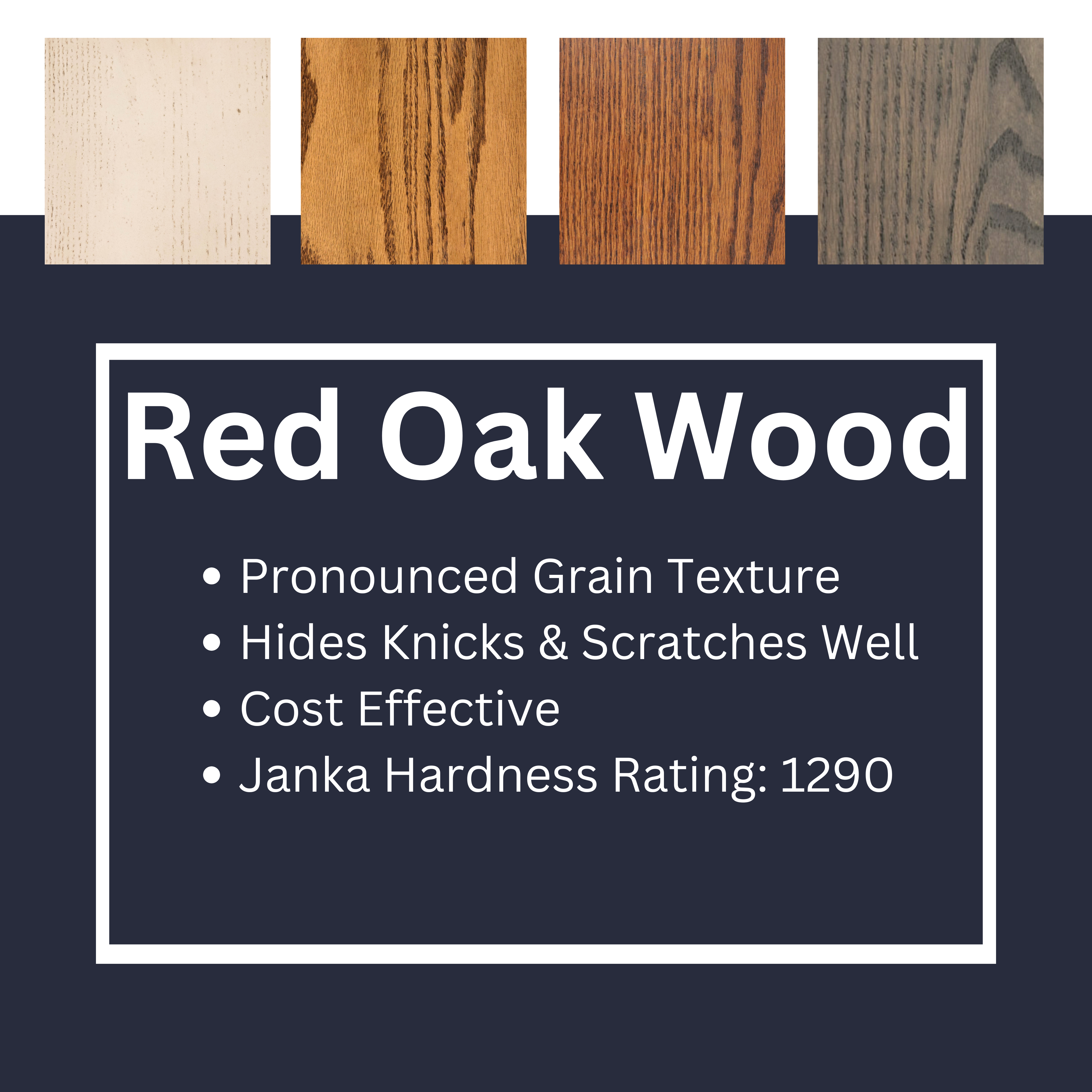 - The Janka Wood Rating of Red Oak is 1290.