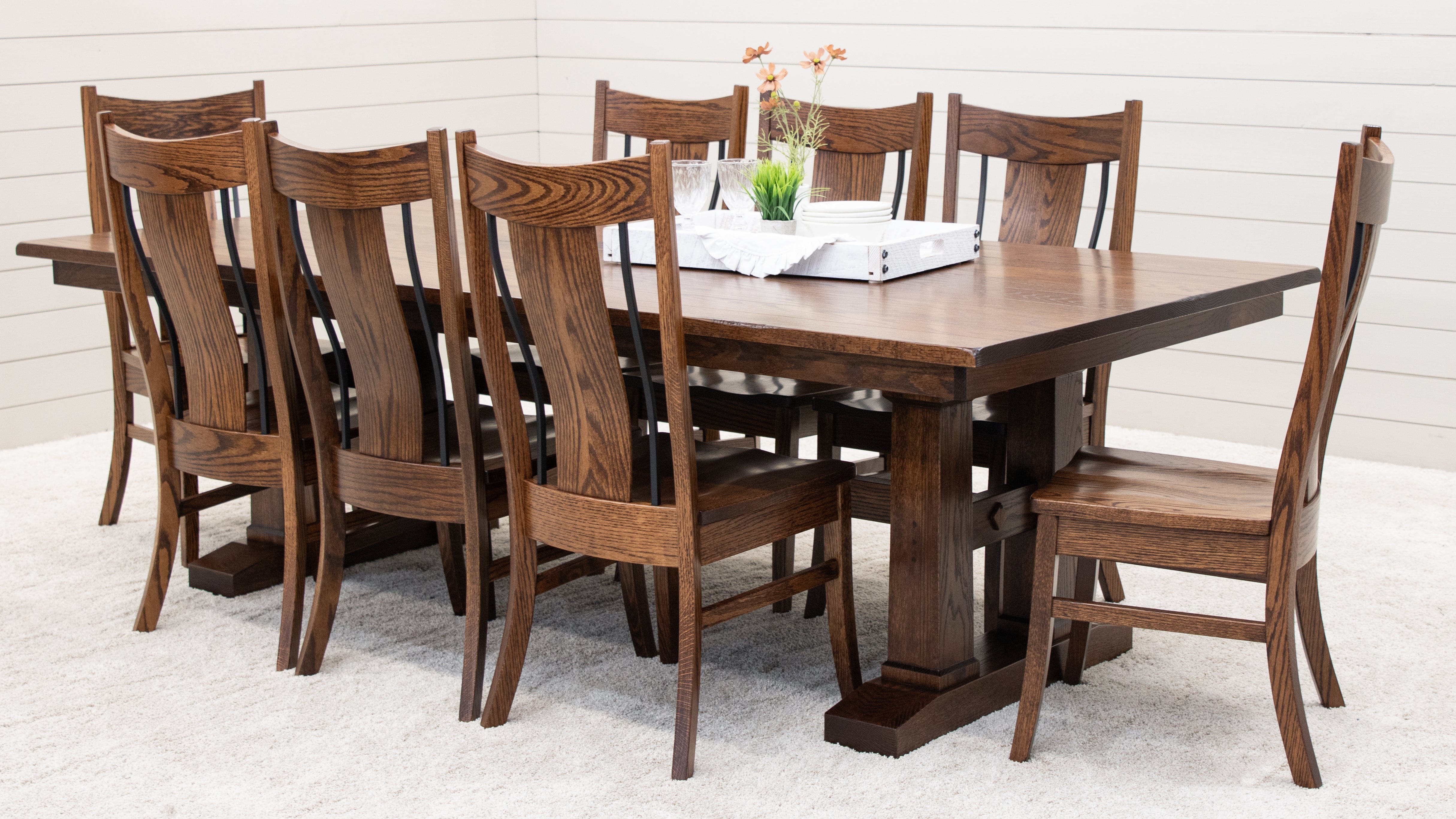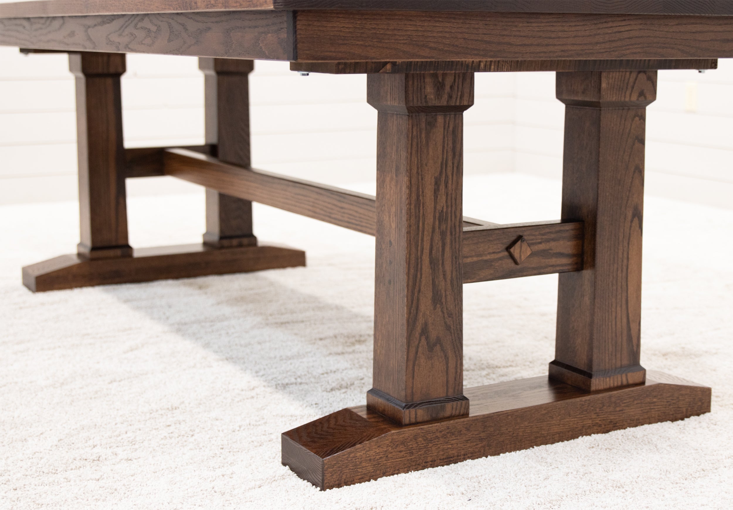 Rowan Hickory Wood Large Extending Amish Trestle Dining Table | GS