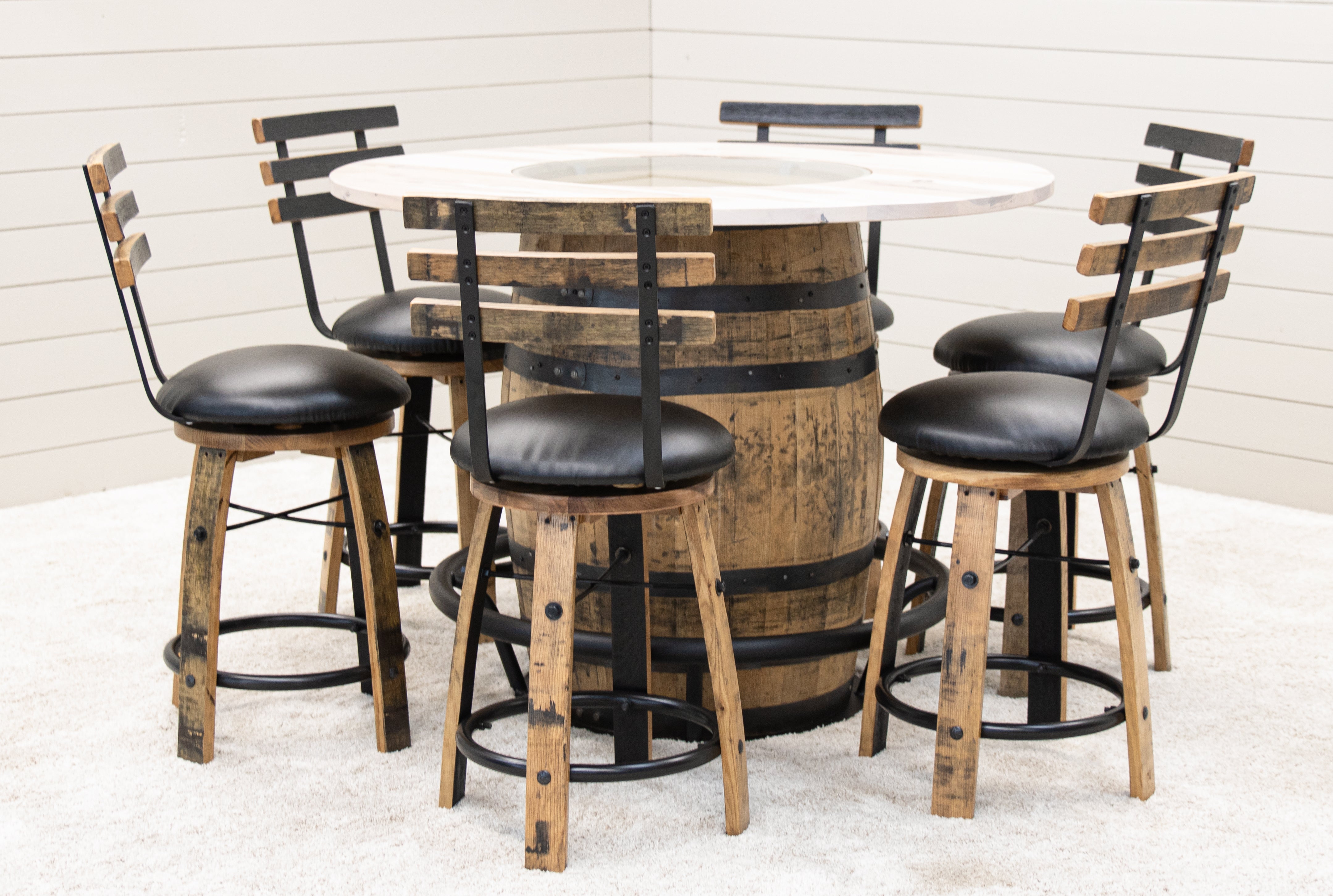 Double Barrel Table & Barrel Bar Stools