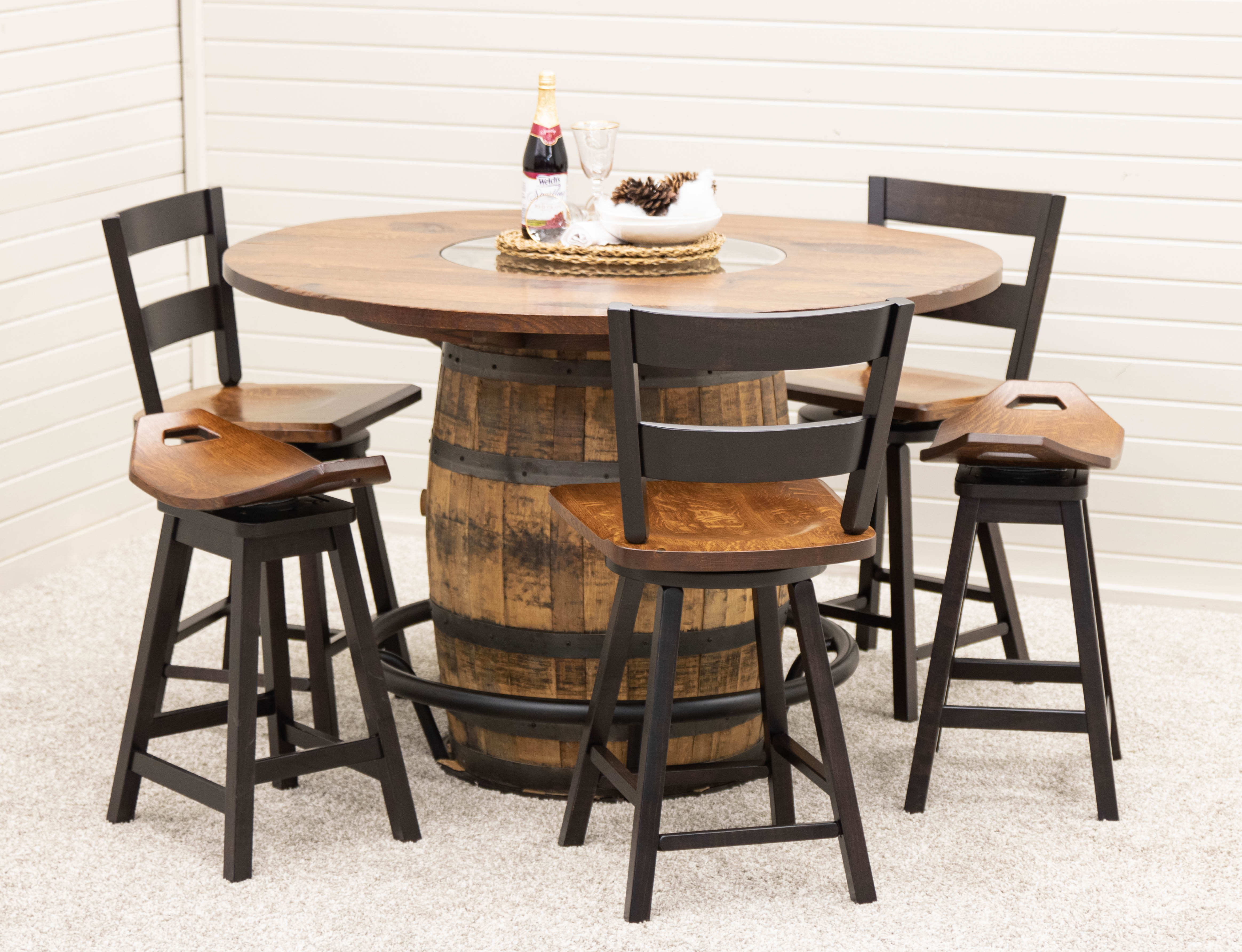 Whiskey Barrel Table Options for Kitchens, Dining Rooms, Family Rooms and Man Caves.
