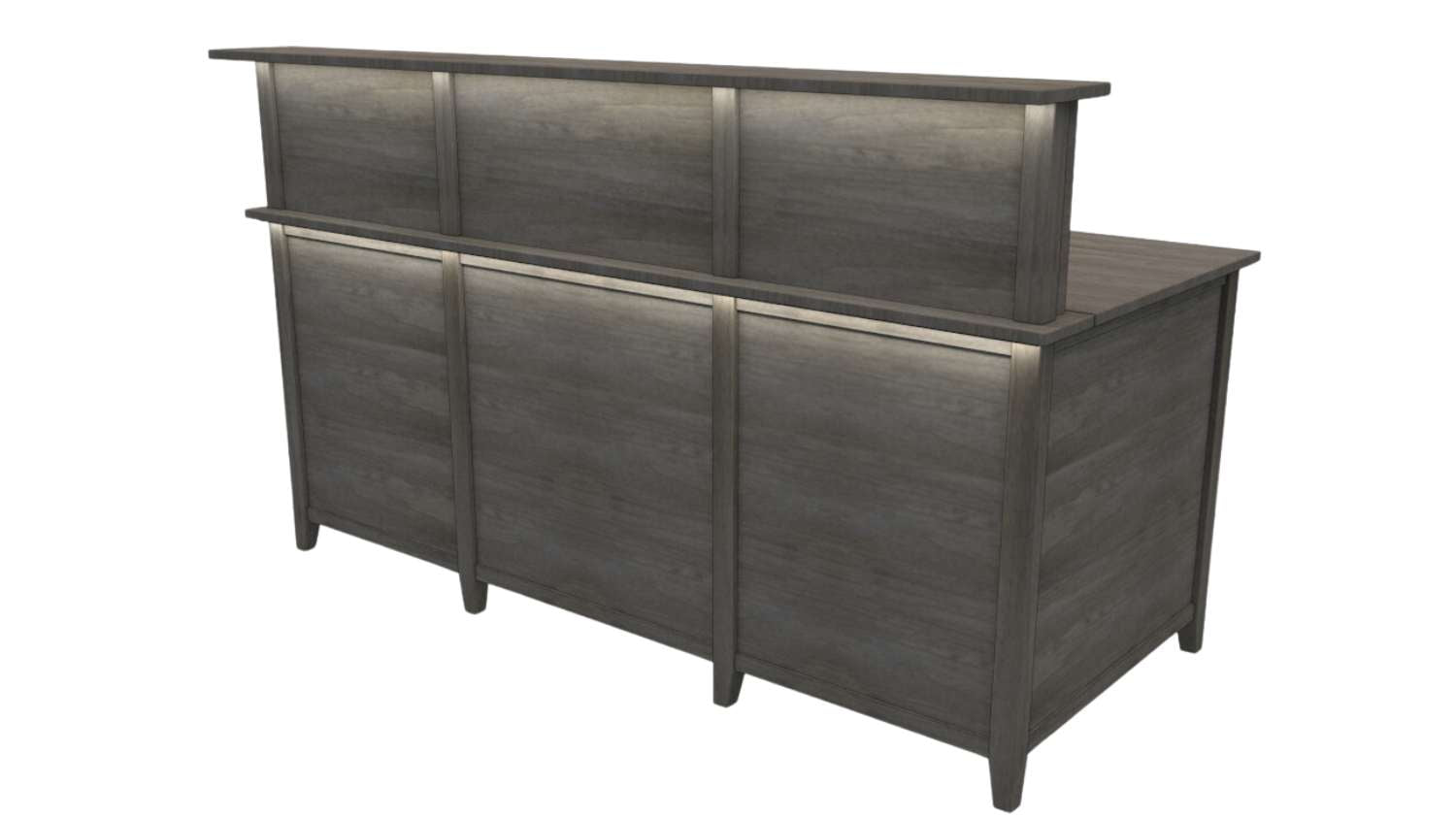 Choosing a stand-up reception desk in solid wood for the lobby of your business adds style and function. The sturdy desktop raises easily to stand and greet guests, then quickly lowers when sitting down to work. Our reception desks are custom made to perfectly fit your business and brand.