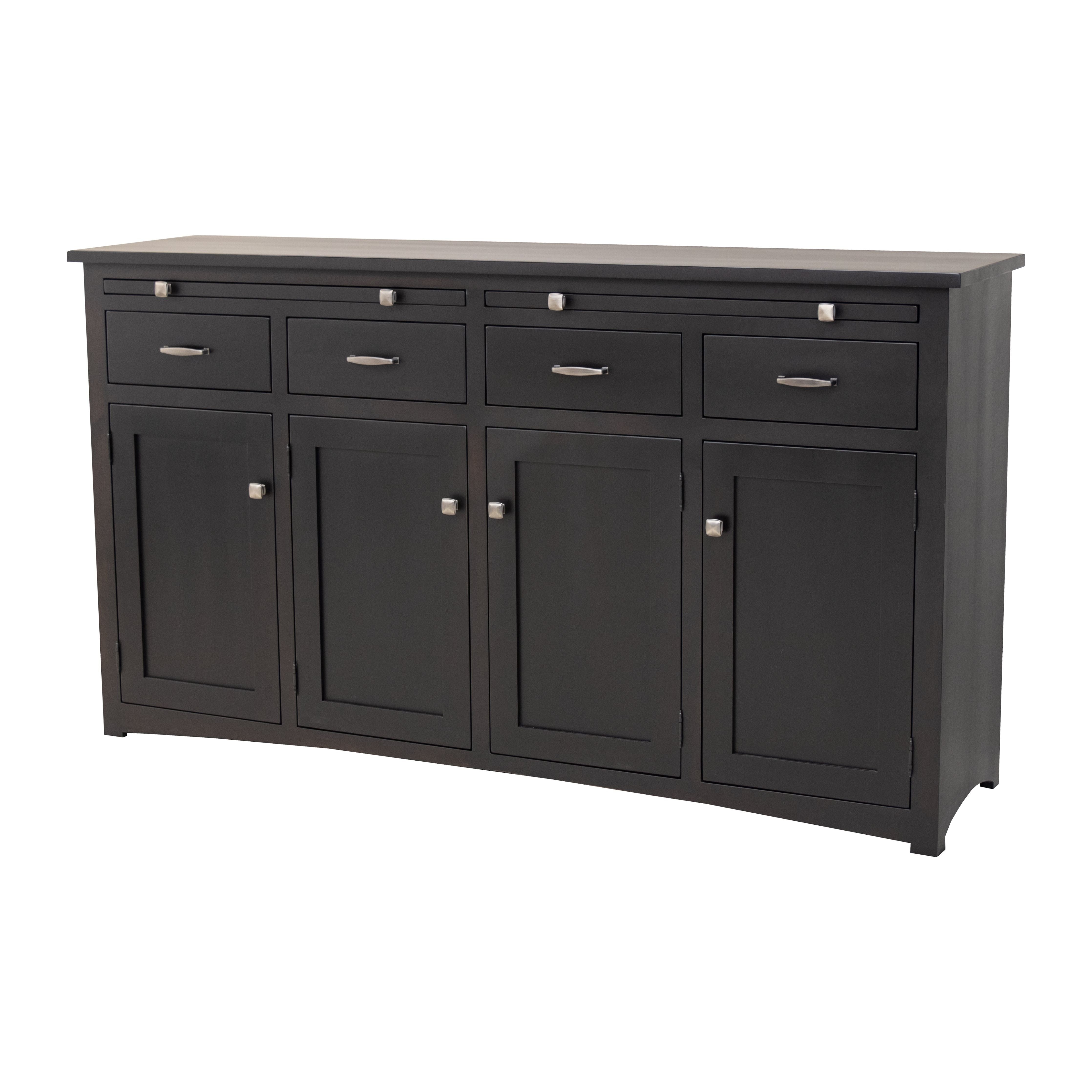 You can configure the storage space within our buffet cabinets for your specific needs. Add a wine rack into the base or extra drawers for storing seasonal linens. Request storage solutions such a silverware divider insert inside buffet drawers. Pullout trays add extra serving space if you often setup dessert or beverages along the buffet table top.