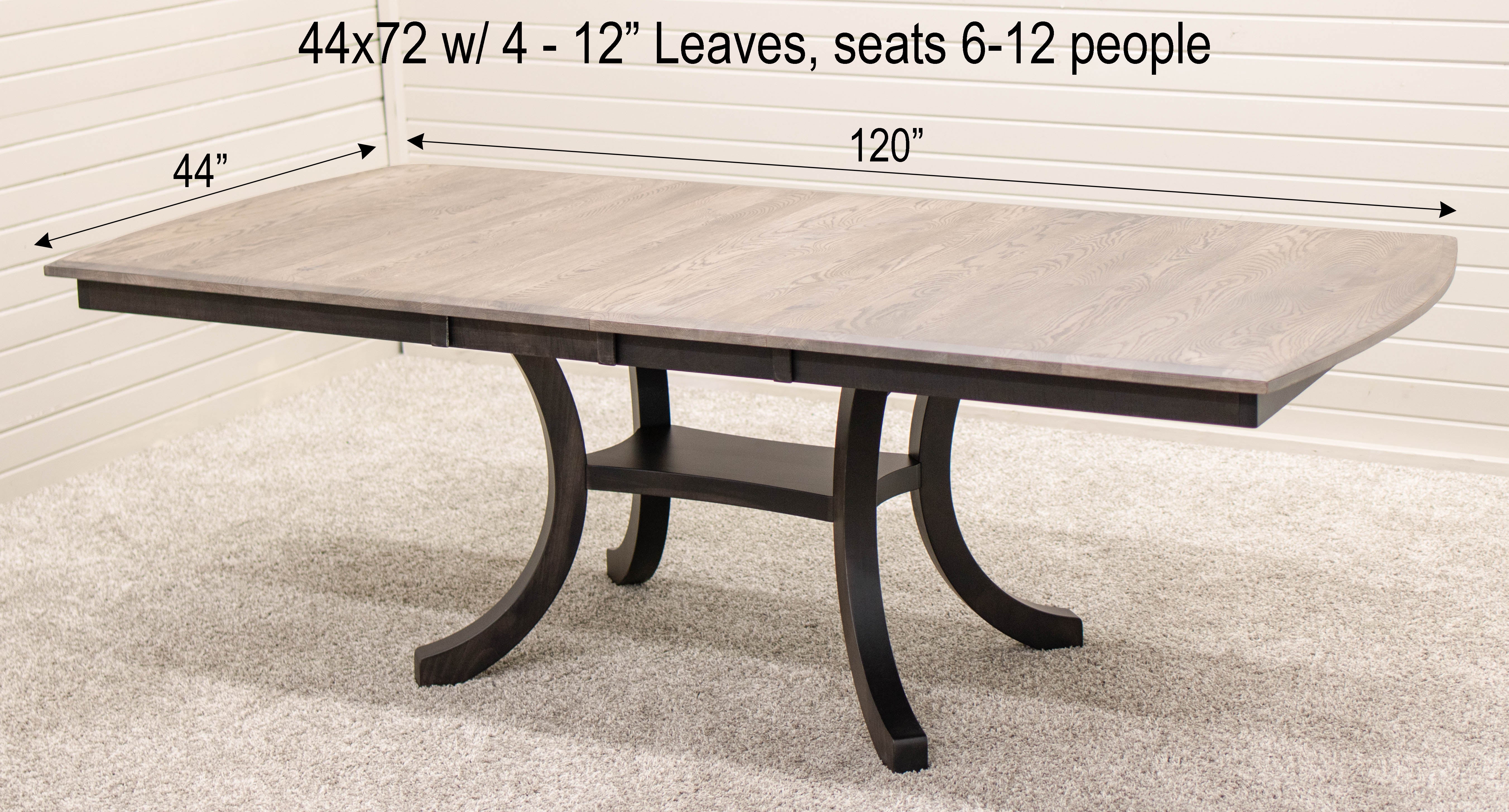 The Carlisle Double Pedestal Extending Dining Table features a solid 1" thick top and bevel edge. The Amish dining table has self-storing leaves and it extends easily with gear slides. The grain runs lengthwise on a table without leaves The grain runs widthwise on a table with leaves. For more info, contact us at Dutch Craft Furniture.