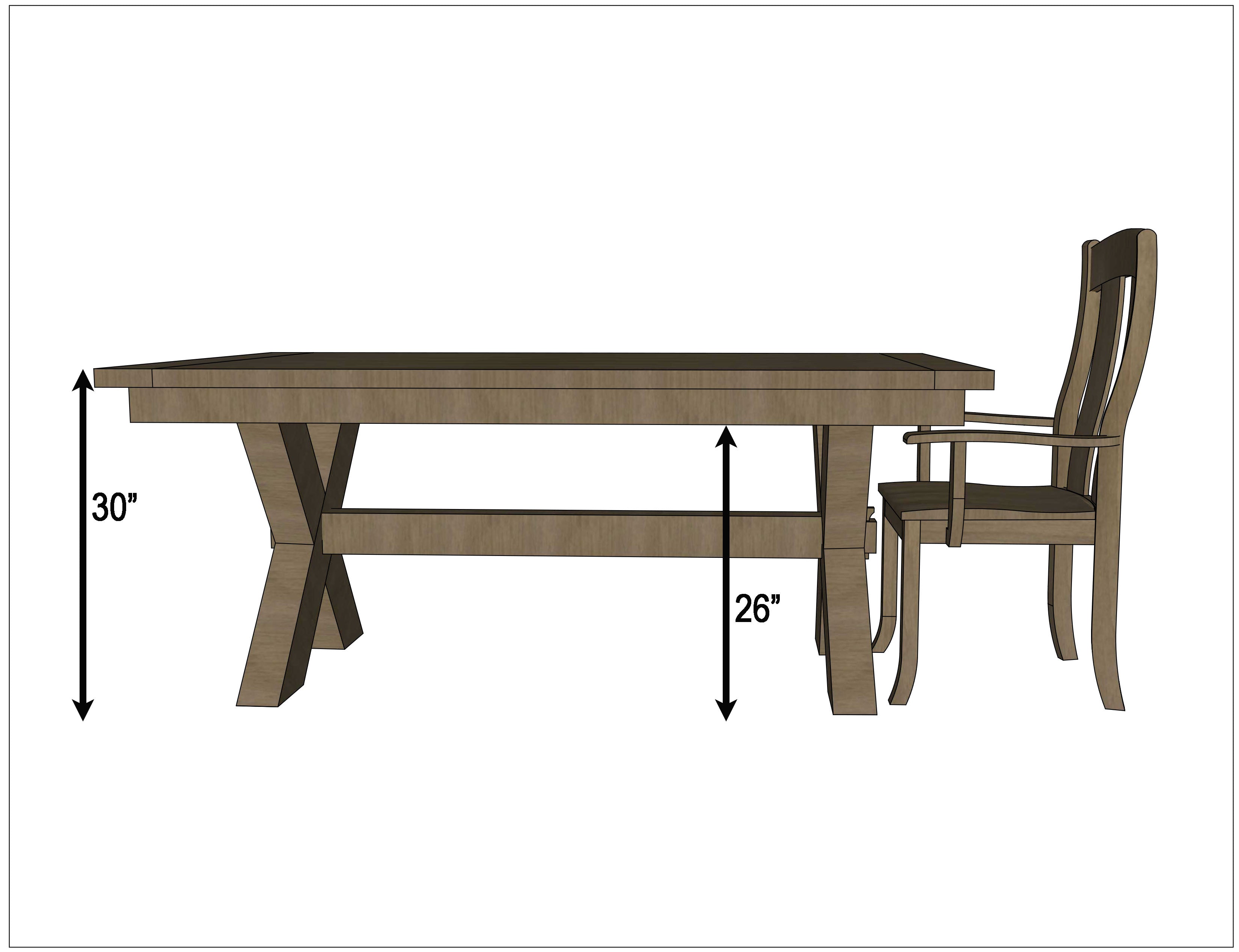 All regular dining tables are approximately 30" high to the top and approximately 26" from the floor to the table apron. For more details on this dining table, contact a member of our team.