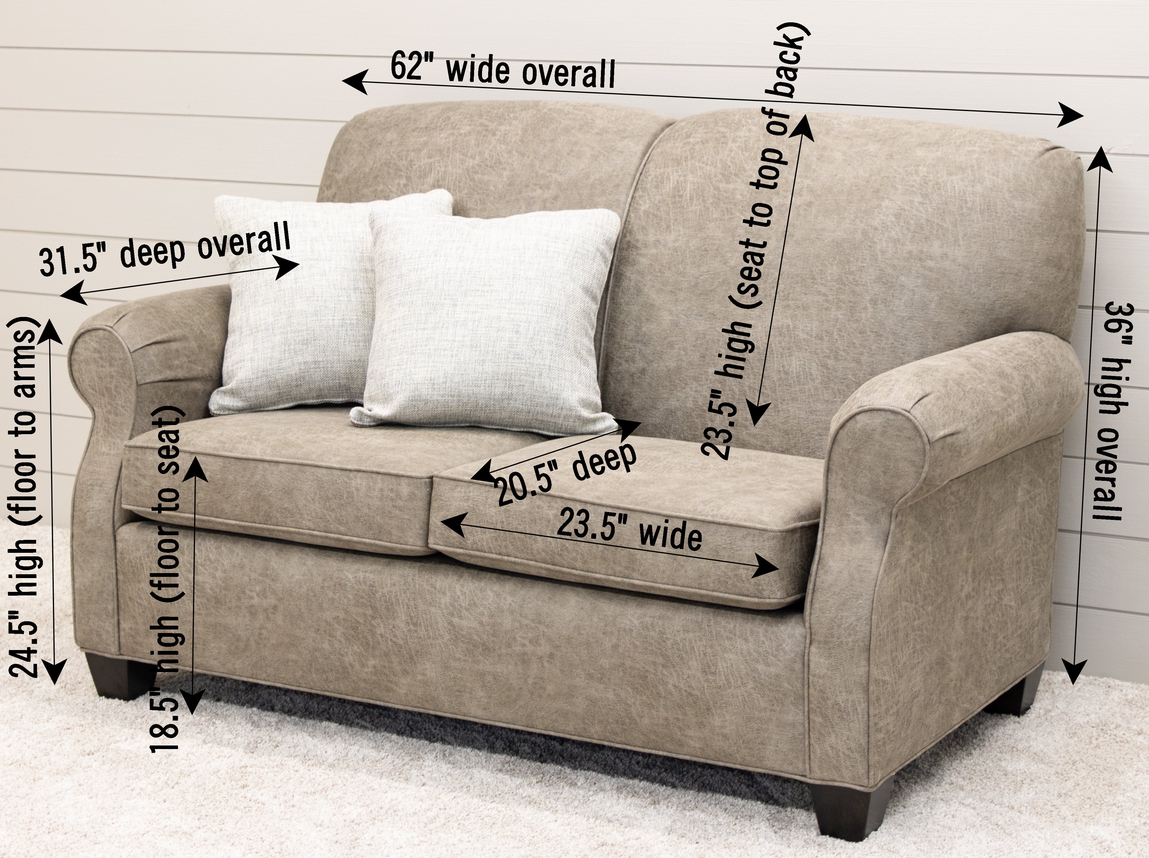 The Traditional Stationary Loveseat is a classic style sofa with rolled arms and vertical welts for added texture to the sleek look of the back. This Amish made loveseat is hand built and upholstered. Order it in your choice of fabric or faux leather color. For more information, contact a member of our team at Dutch Craft Furniture.