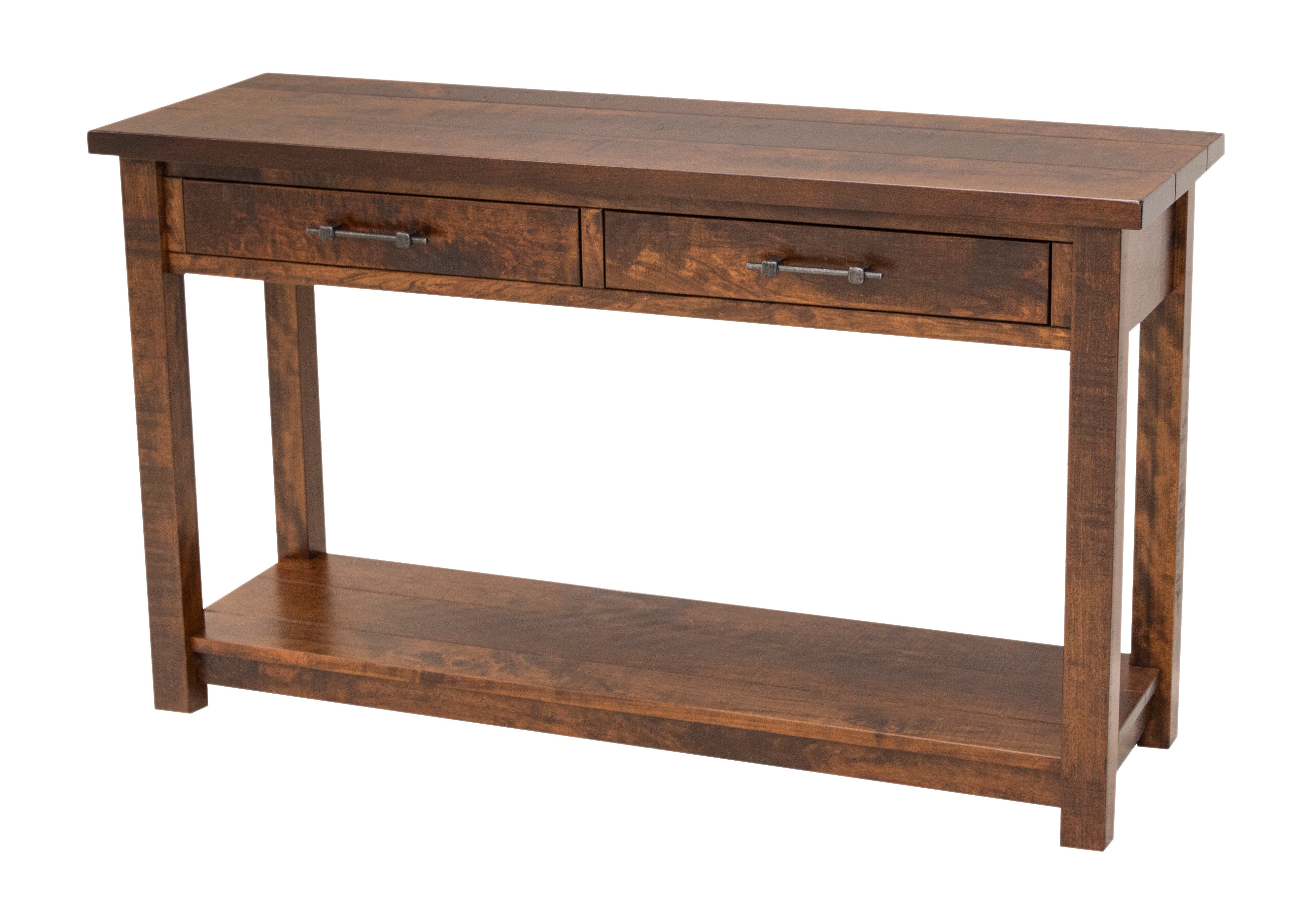 Rustic Cherry wood is another favorite option for the Arcadia collection of TV stands and occasional tables. We display the rustic collection in Cherry wood with Asbury Brown stain.