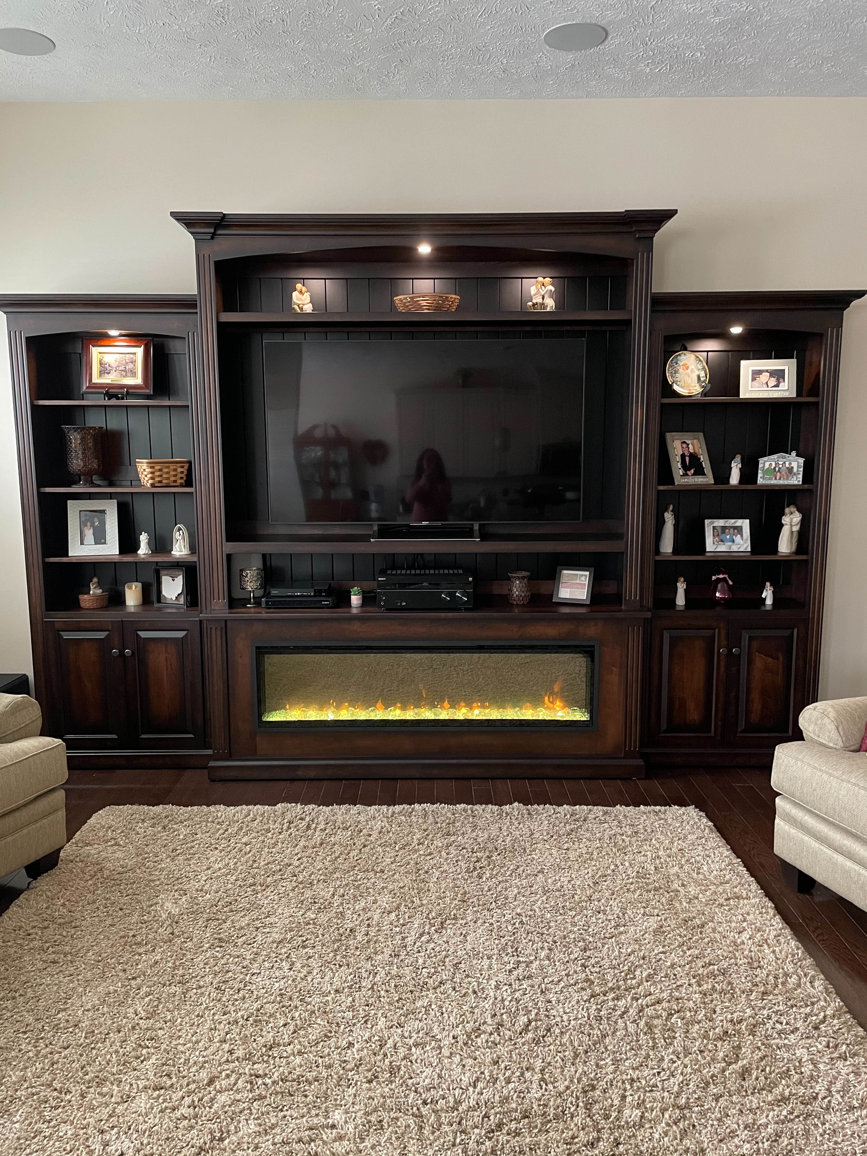 Add the coziness of a flickering fire in your family room with an Amish fireplace TV stand. All Amish TV console styles are available with an electric fireplace insert. We display the rustic Riverton TV Console as a great option for a farmhouse TV stand with fireplace. Contact us anytime to request prices or a picture of your favorite style with a fireplace.