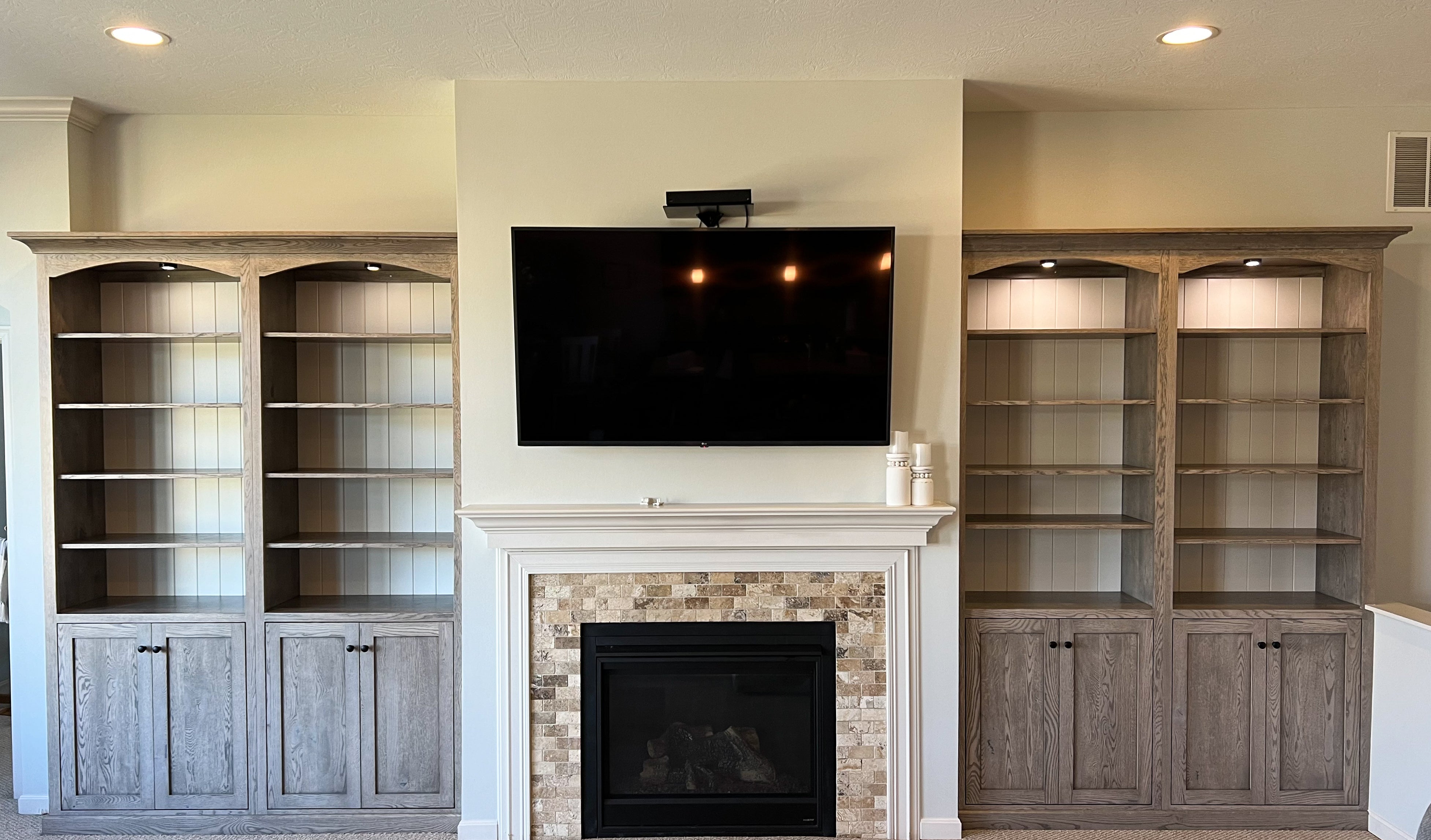 Our Arcadia barn door TV consoles feature rustic quarter sawn White Oak with Golden Brown stain. Golden Brown is a warm stain that perfectly complements the rustic TV stand style.