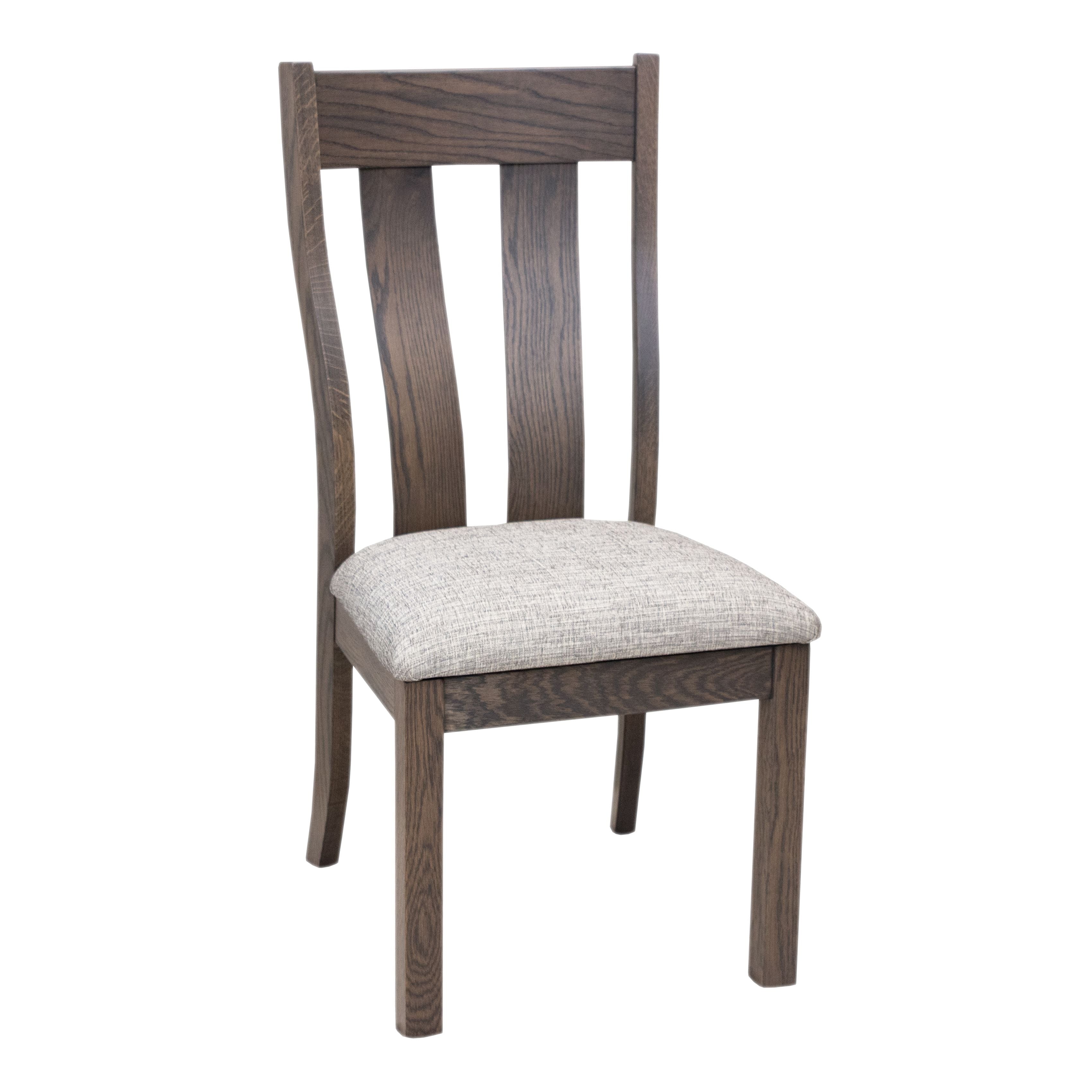 Amish crafters locally make our complete line of dining chairs upholstered in leather or fabric. This allows you to customize as needed to fit your design vision. Exposed wooden chair parts are available in Red or White Oak, Maple, Cherry, Elm, Hickory, and Walnut wood.