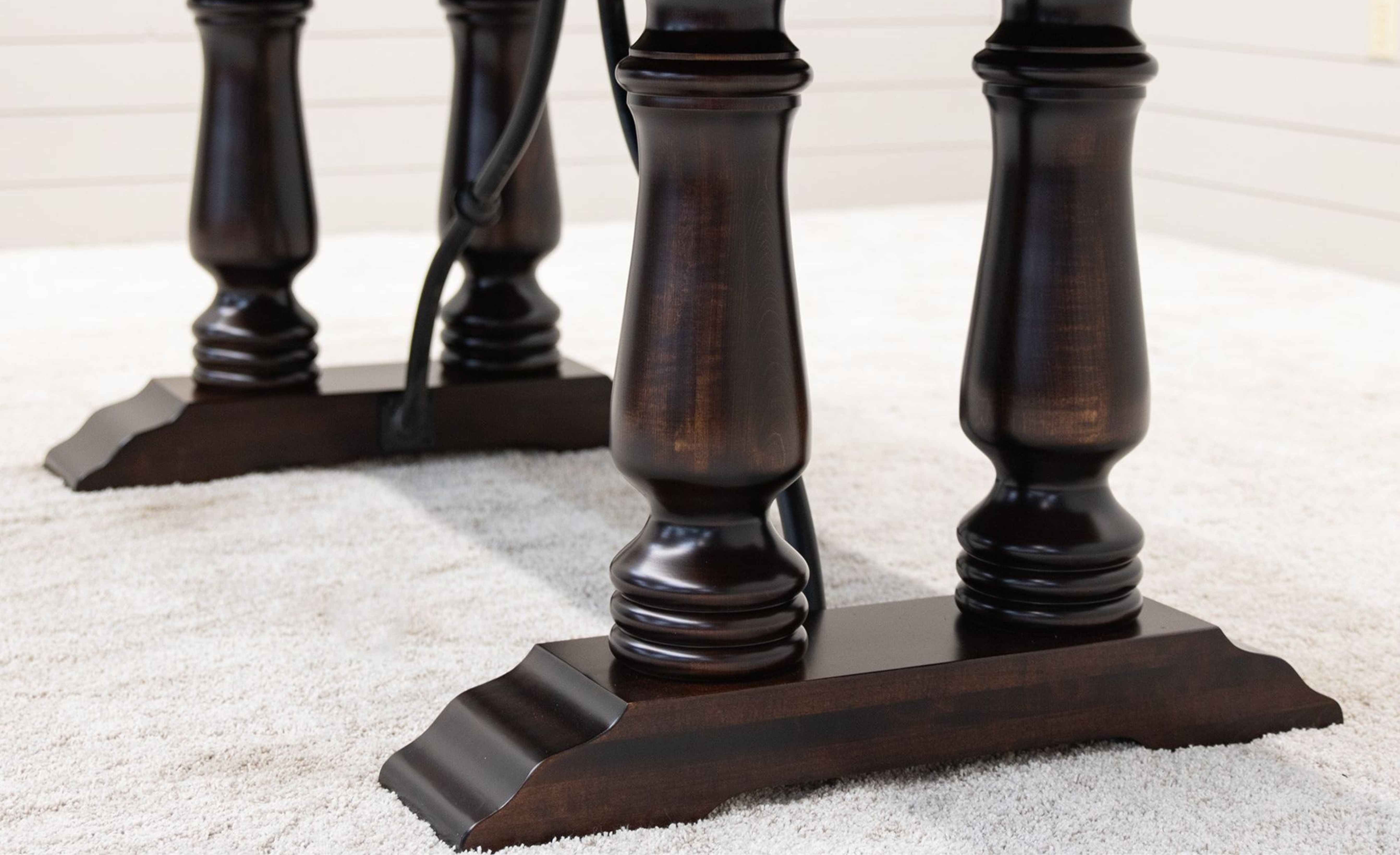 Every dining table is available in your choice of wood type and stain color. Wood options include Red or White Oak, Maple, Cherry, Hickory, Elm, and Walnut wood.