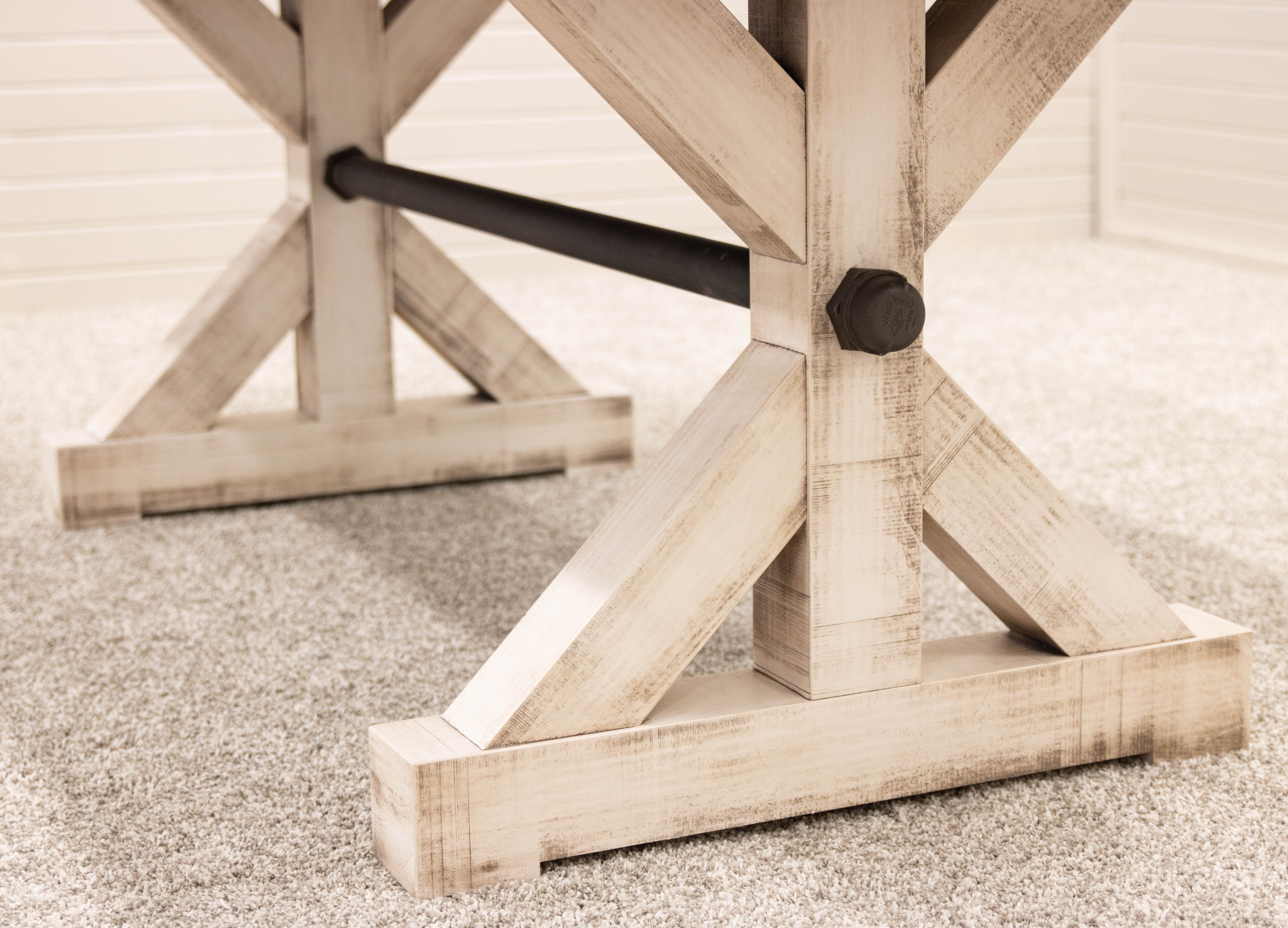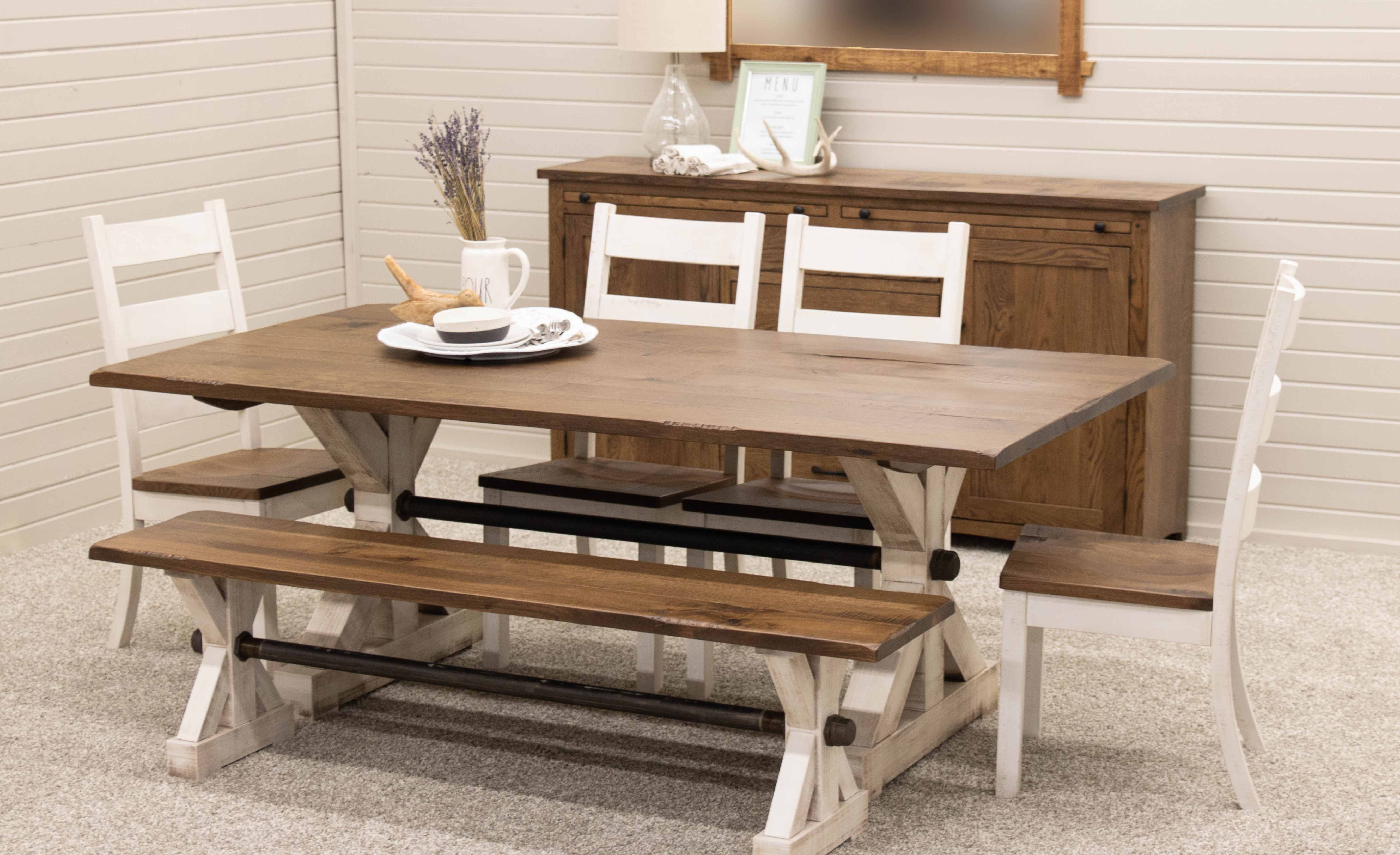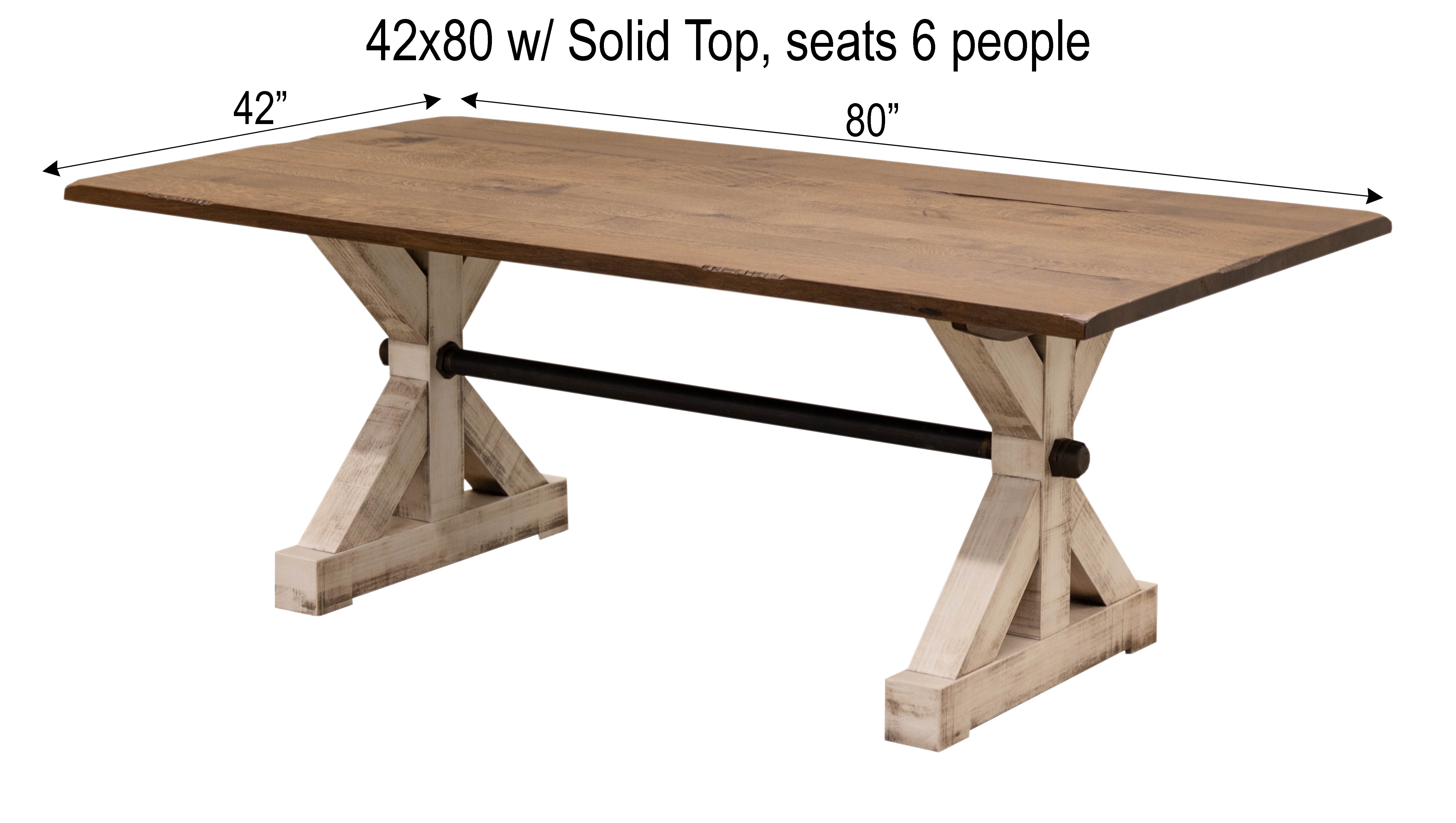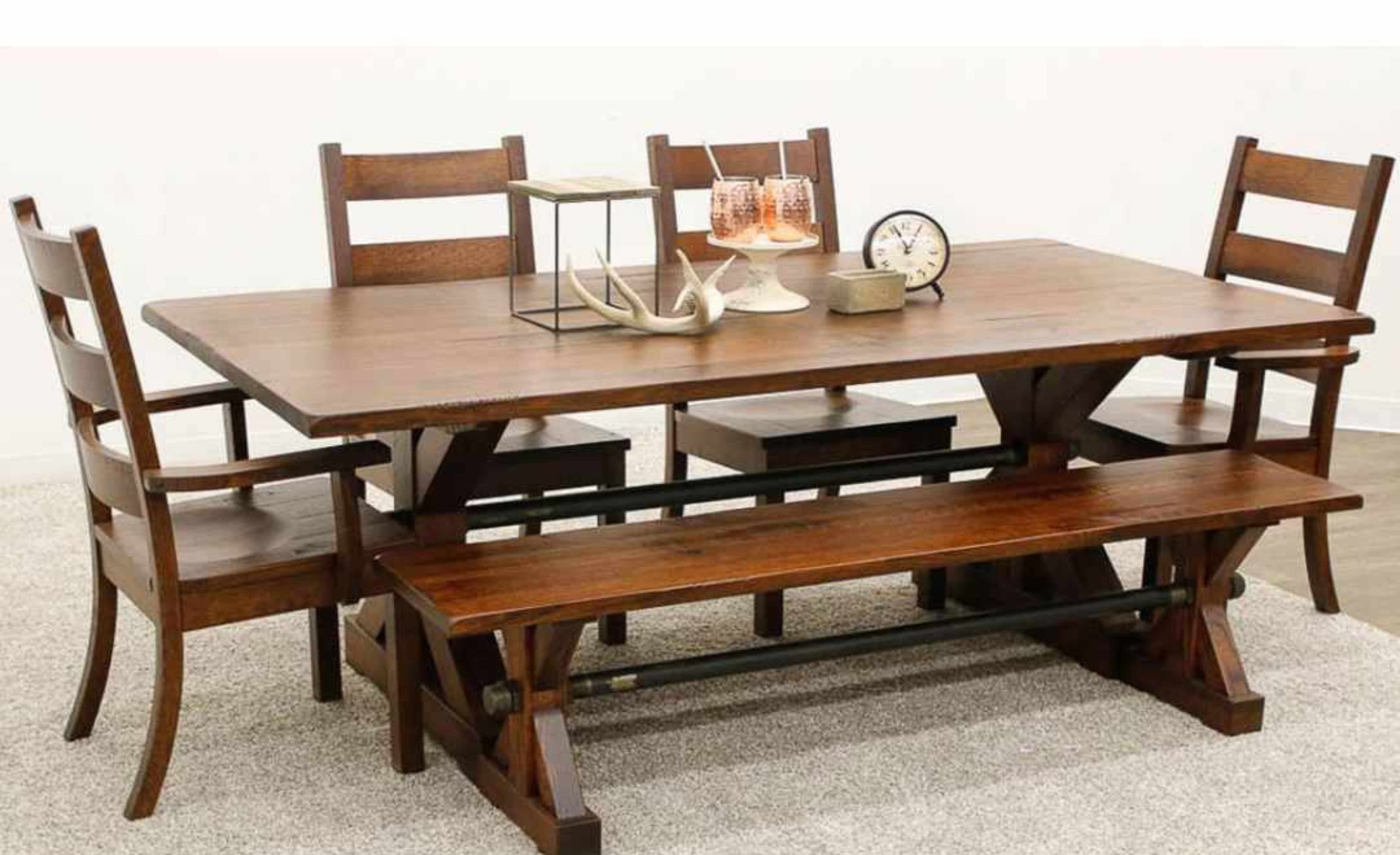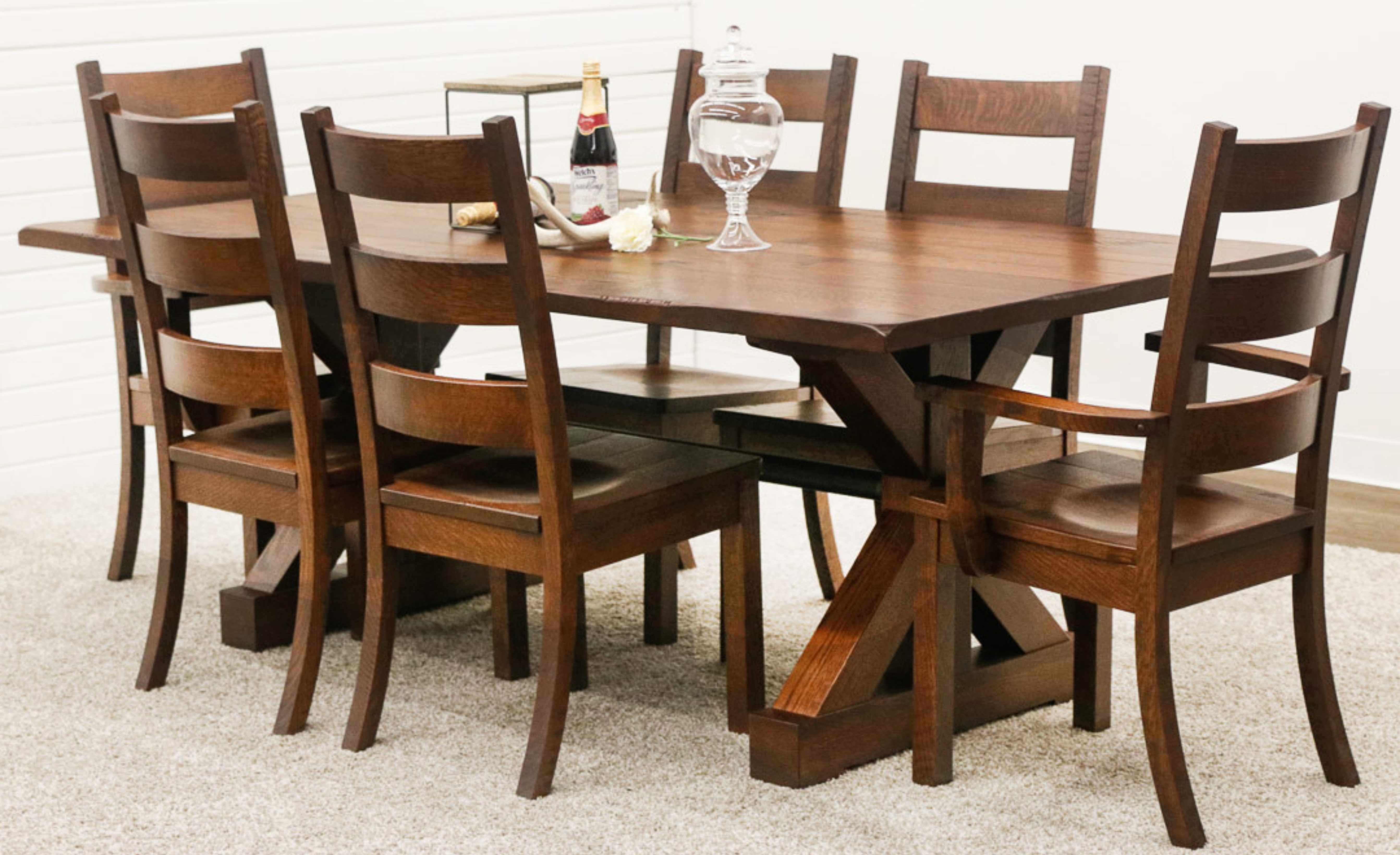 Every dining table is available in your choice of wood type and stain color. Wood options include Red or White Oak, Maple, Cherry, Hickory, Elm, and Walnut wood.