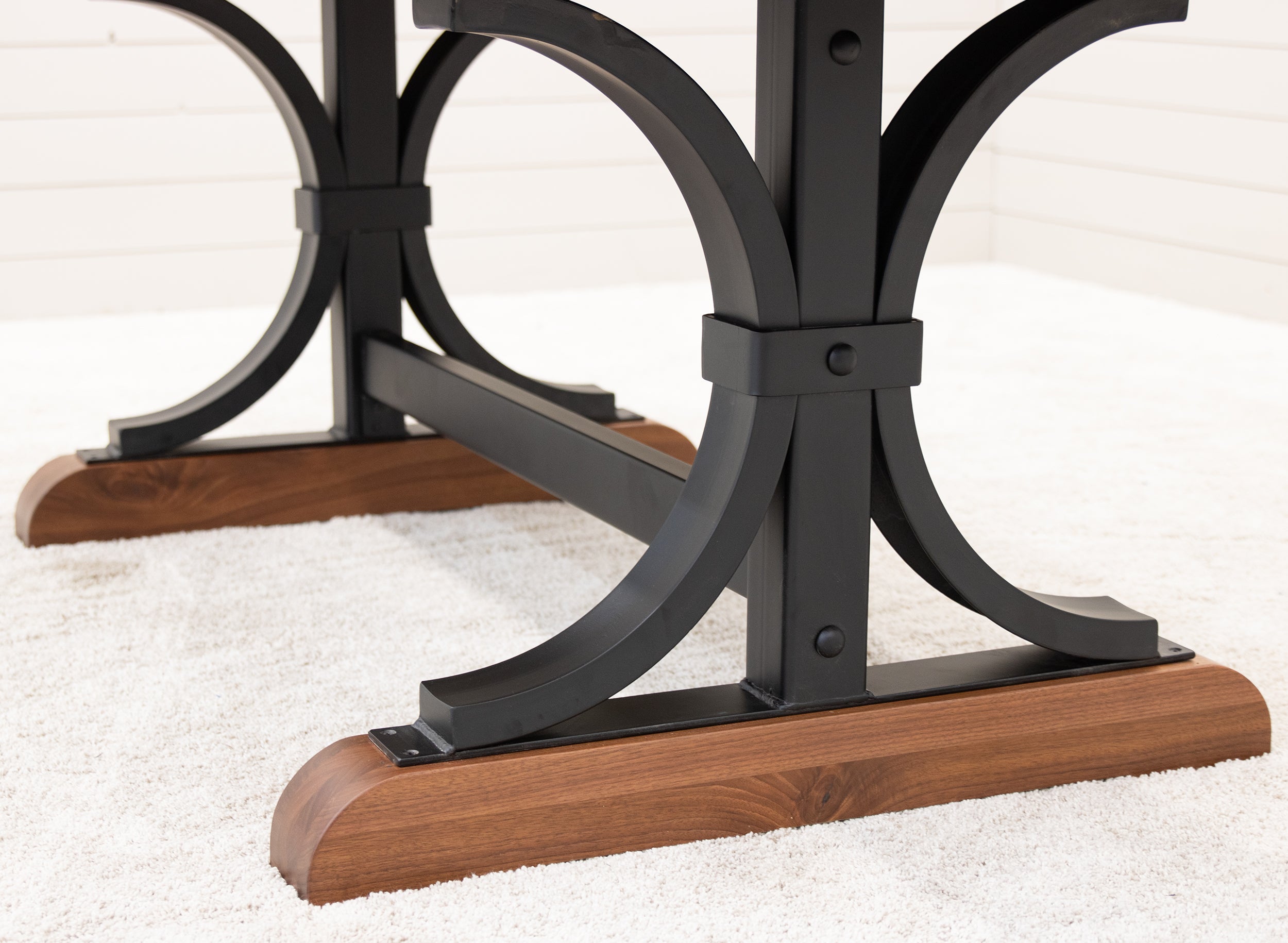 Every dining table is available in your choice of wood type and stain color. Wood options include Red or White Oak, Maple, Cherry, Hickory, Elm, and Walnut wood.