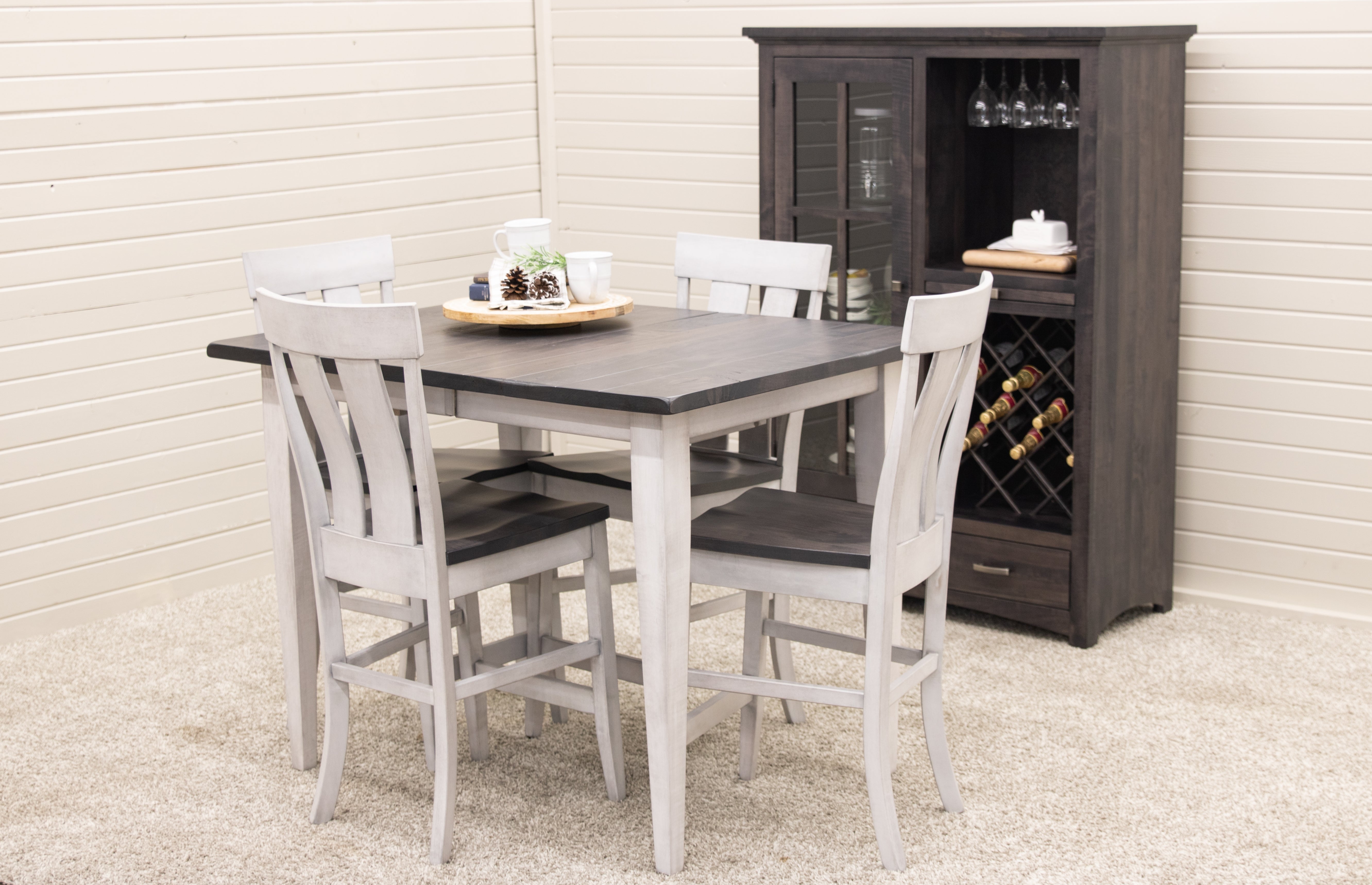 Every dining table is available in your choice of wood type and stain color. Wood options include Red or White Oak, Maple, Cherry, Hickory, Elm, and Walnut wood.