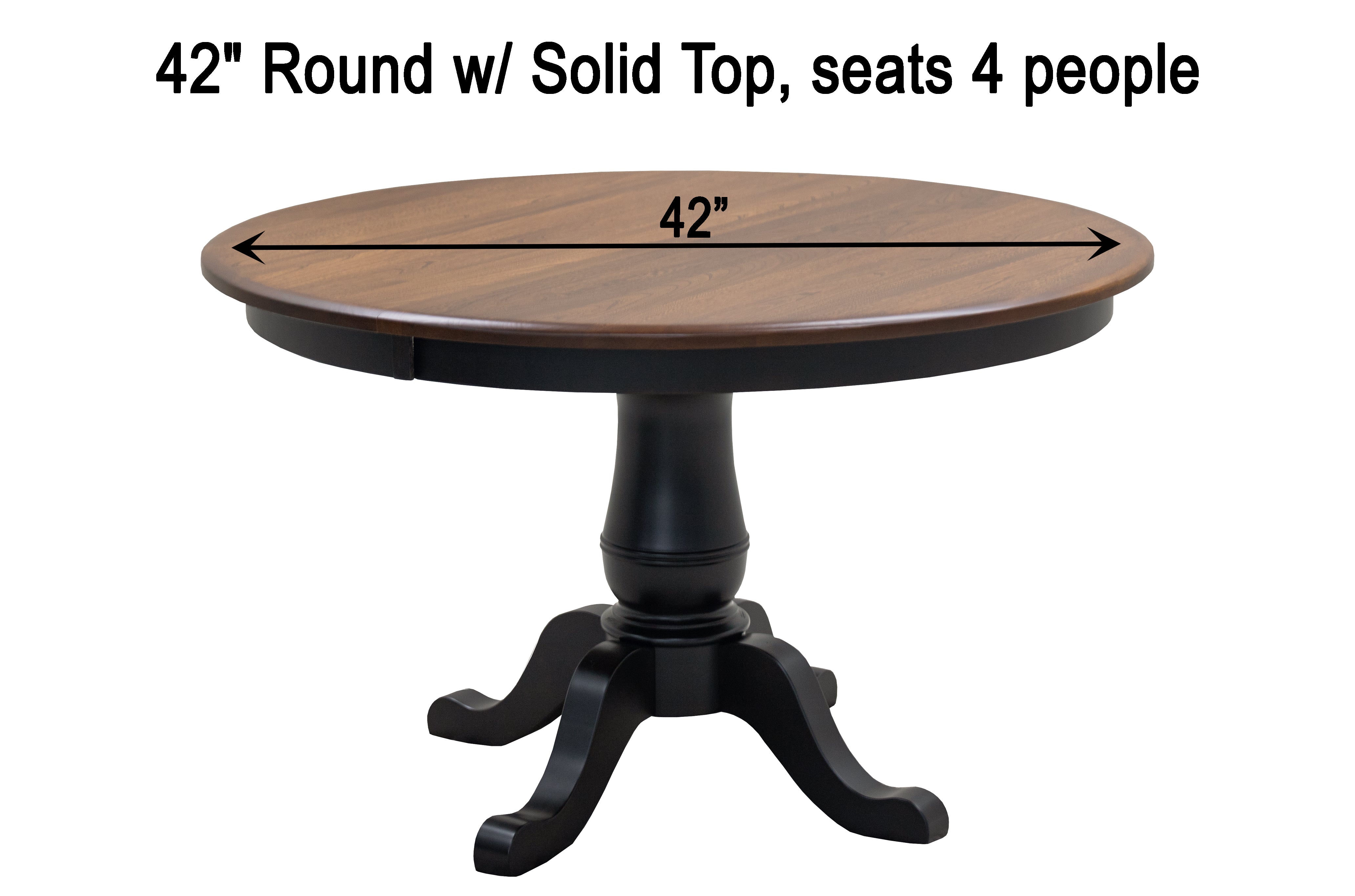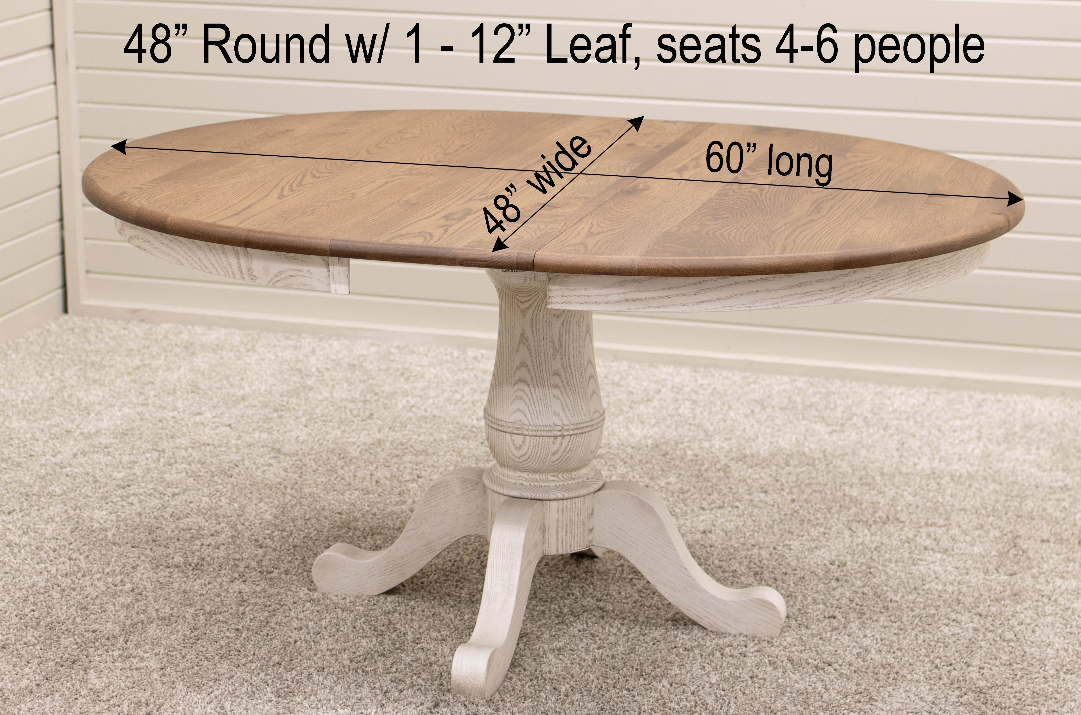 The Ellington Round Extending Dining Table features a solid 1" thick solid hardwood top. The Amish dining table has self-storing leaves and it extends easily with gear slides. For more info, contact us at Dutch Craft Furniture.