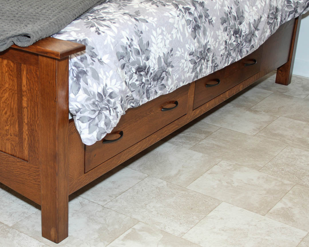 This option adds storage drawers in a subtle way. The footboard is standard and the siderails remain off the floor.