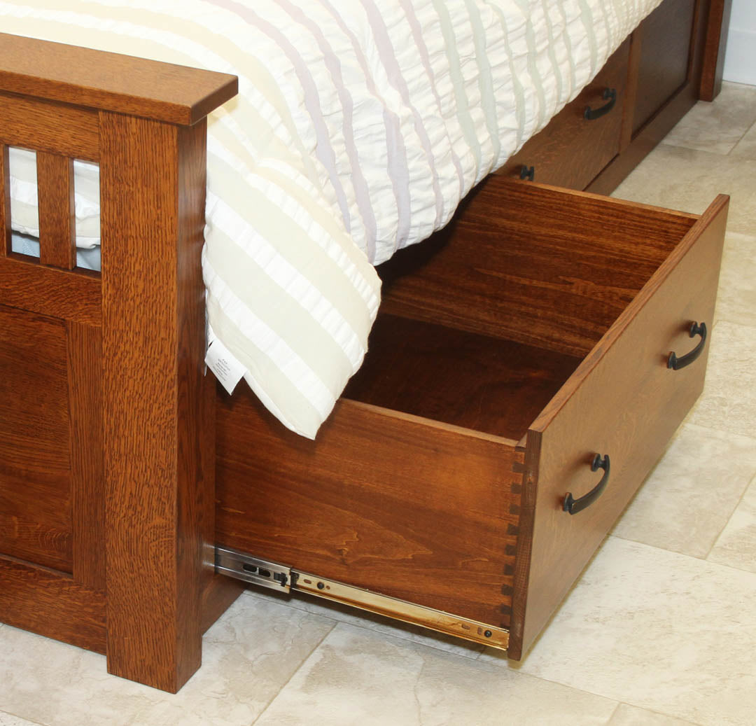 This option incorporates two drawers into the footboard and one drawer in each siderail. This style is only available with a low footboard.