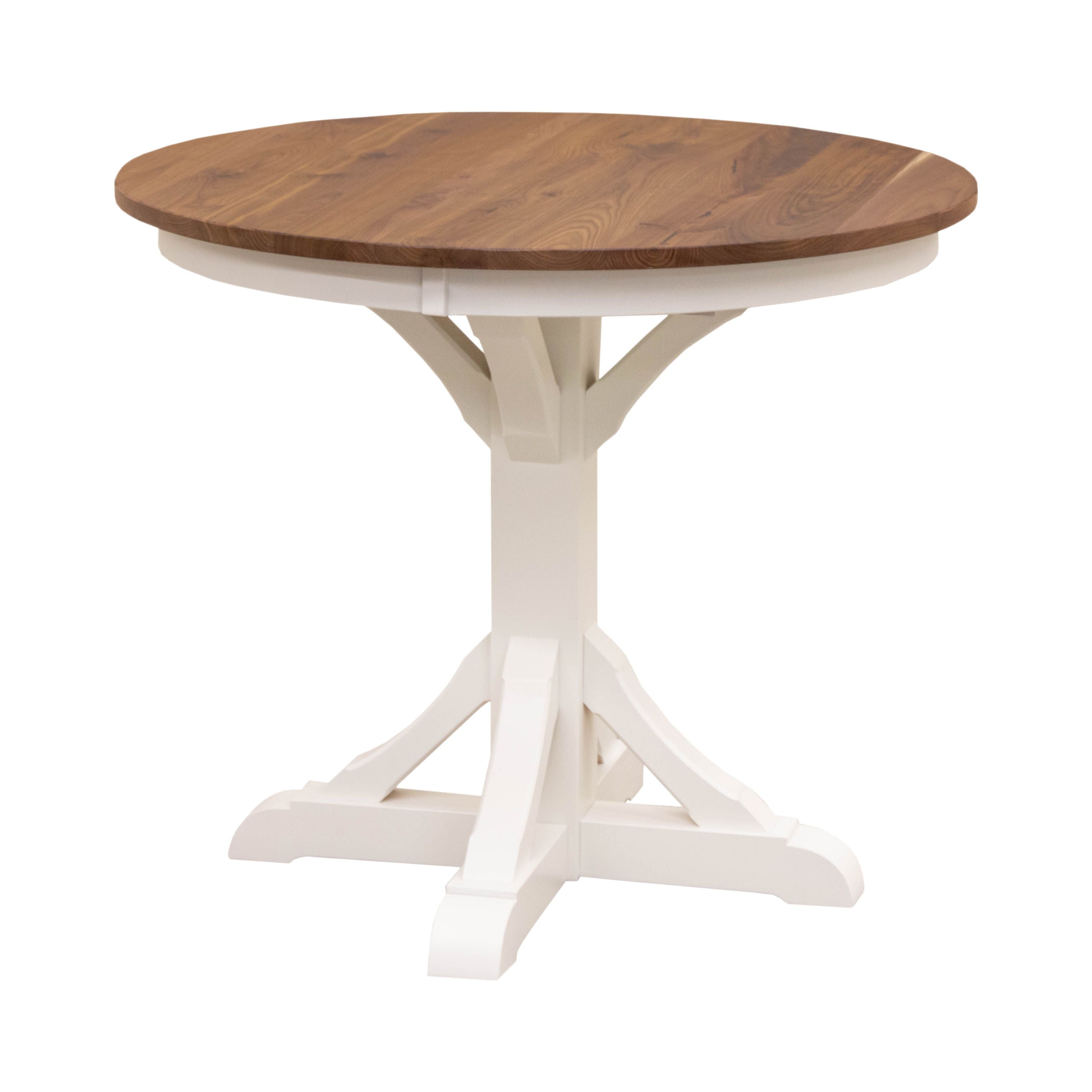 The Alberta pedestal base is a versatile classic for medium to large round tables with or without leaves. The sturdy craftsman style is excellent for supporting a heavy solid wood tabletop. Consider a Glacier pedestal for smaller 36"-42" round pub tables. Other round pedestal bases like the Newport offer a range of mid-size tables ranging from 42"-48" in diameter.