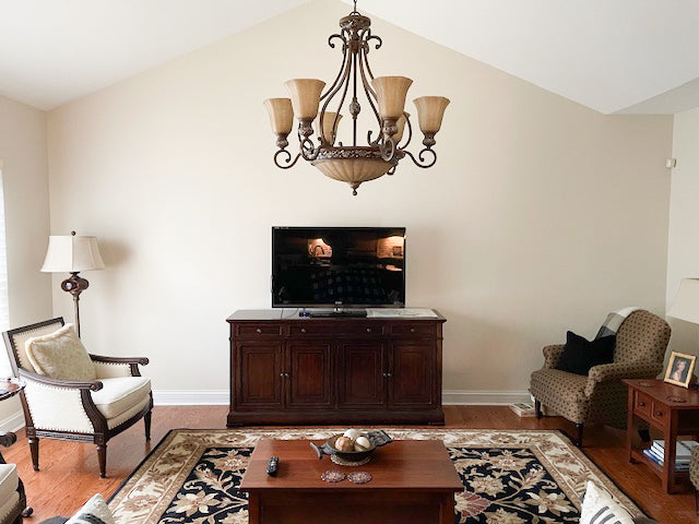 A common design challenge many homeowners face is a large blank wall in open floor spaces. This is especially true for open floor plans with high ceilings. A large entertainment center with added height instantly grounds the space and creates a stunning focal point in your home.