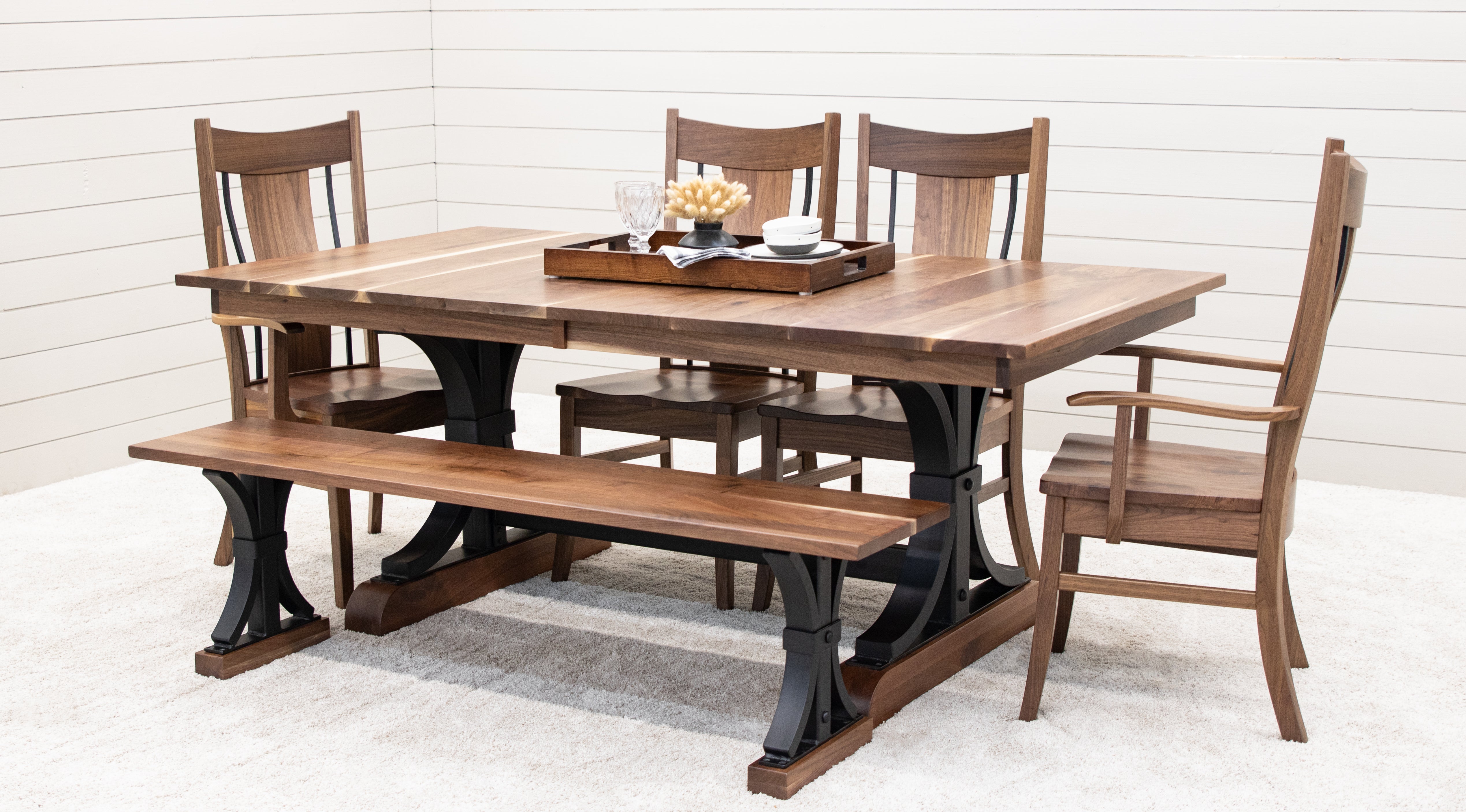 Trestle dining tables are an excellent choice for large dining rooms. At Dutch Craft Furniture, we display a variety of solid wood trestle tables. From traditional and formal, to rustic and farmhouse, there is a trestle base to complement your style.
