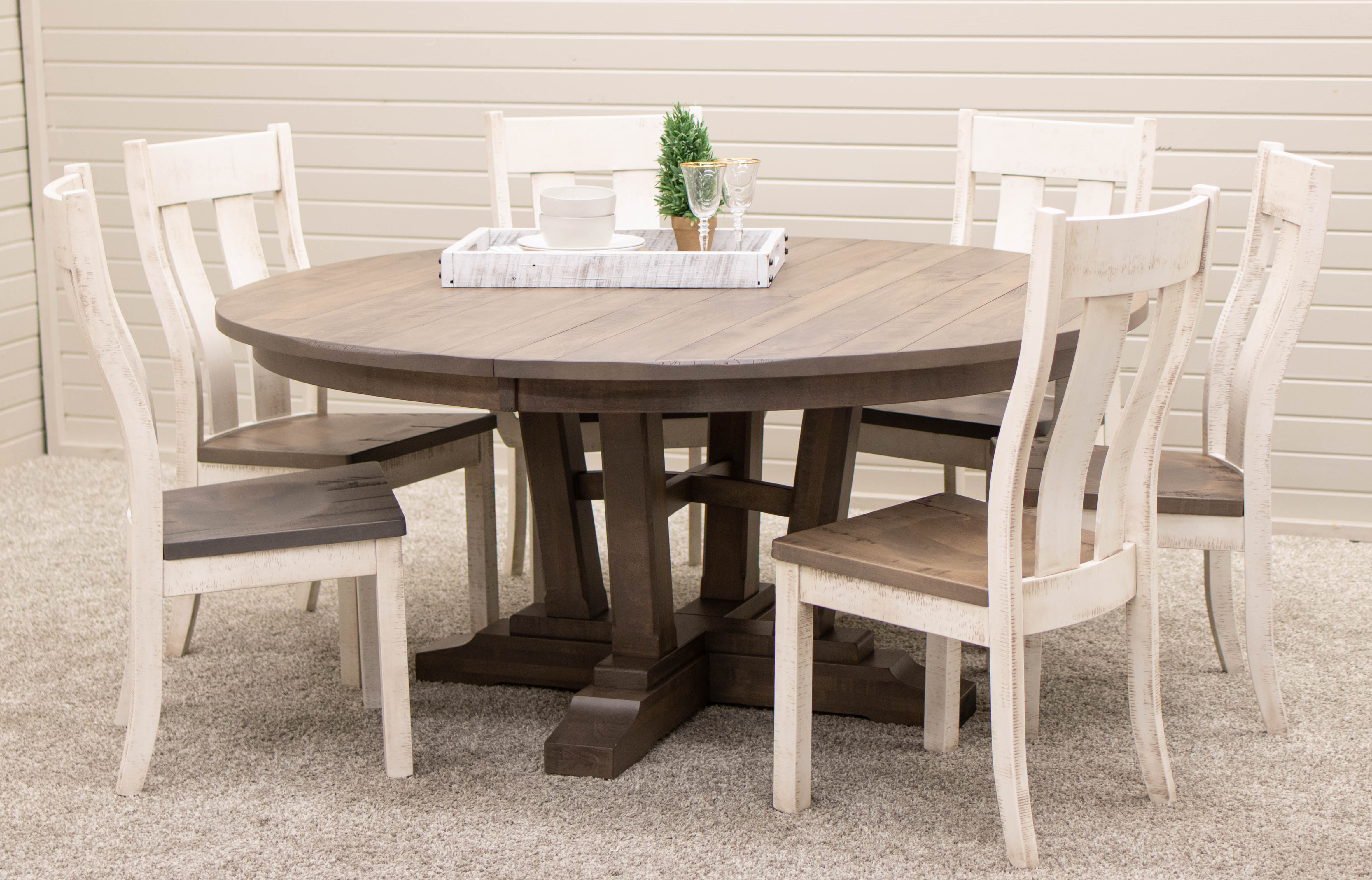 Choosing a formal style, solid wood dining table offers many wood options. Our local Amish craftsmen use a variety of durable, American hardwoods. Choose your favorite from options including Maple, Oak, Cherry, Elm, Hickory and Walnut wood.
