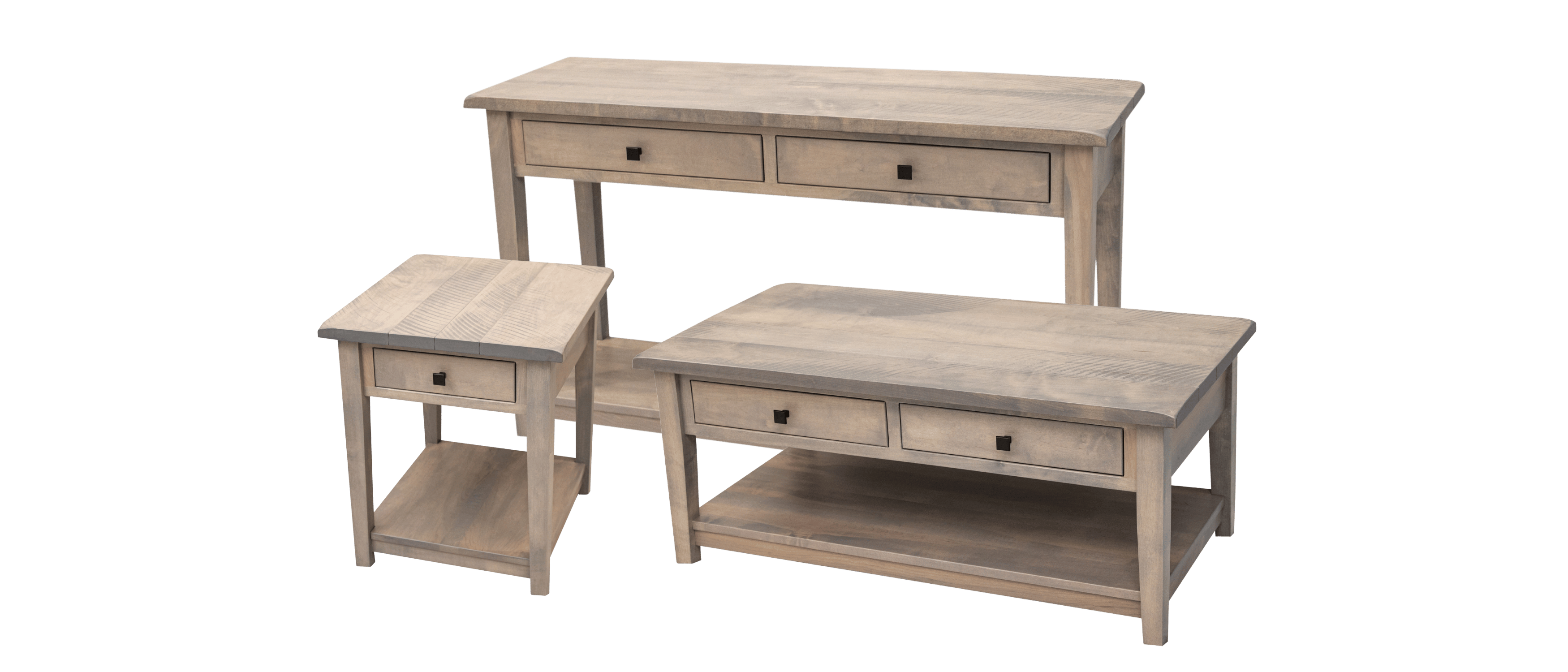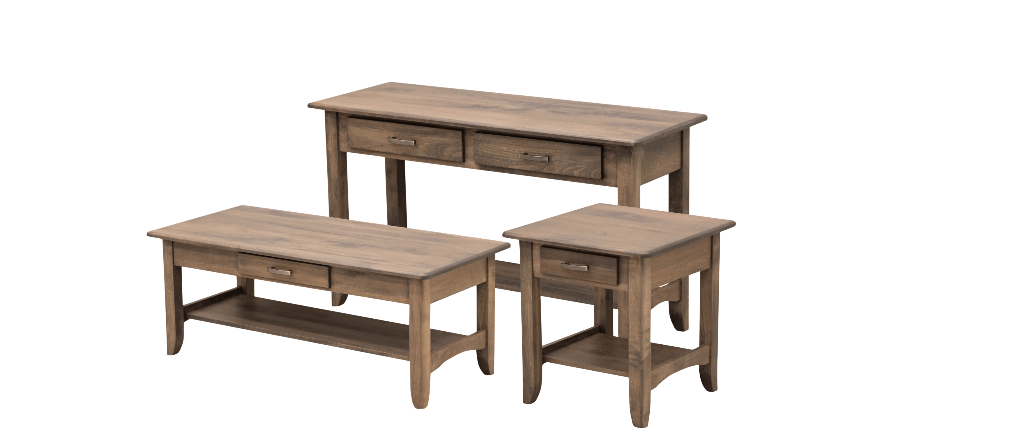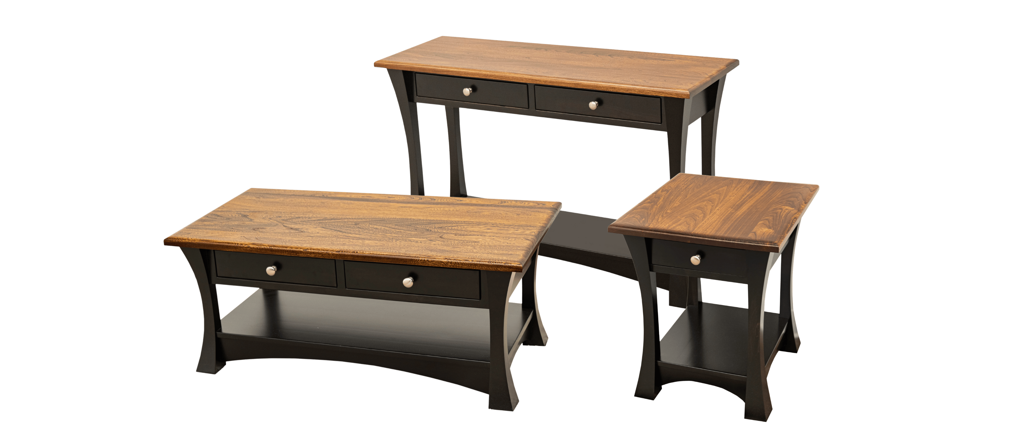 Local Amish craftsmen build our coffee table sets using solid American hardwoods. All wood types have a wide range stain or paint colors.