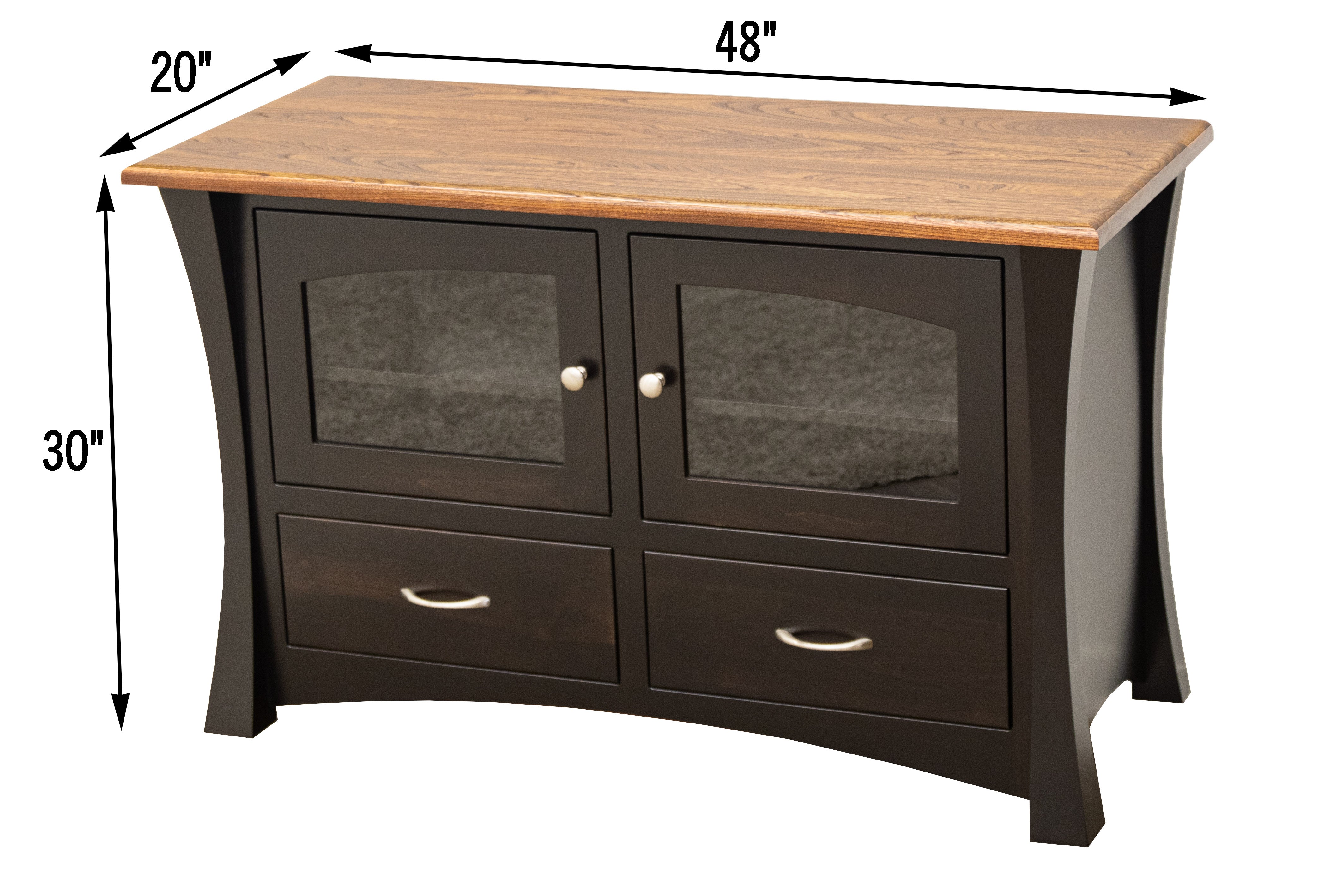 The Brooklyn TV Console features curved legs and rounded edges along the top. The piece is built with solid wood by Amish craftsman, made to be sturdy and long lasting. Order the tv console in your choice of wood and color. For more details, contact a member of our team.