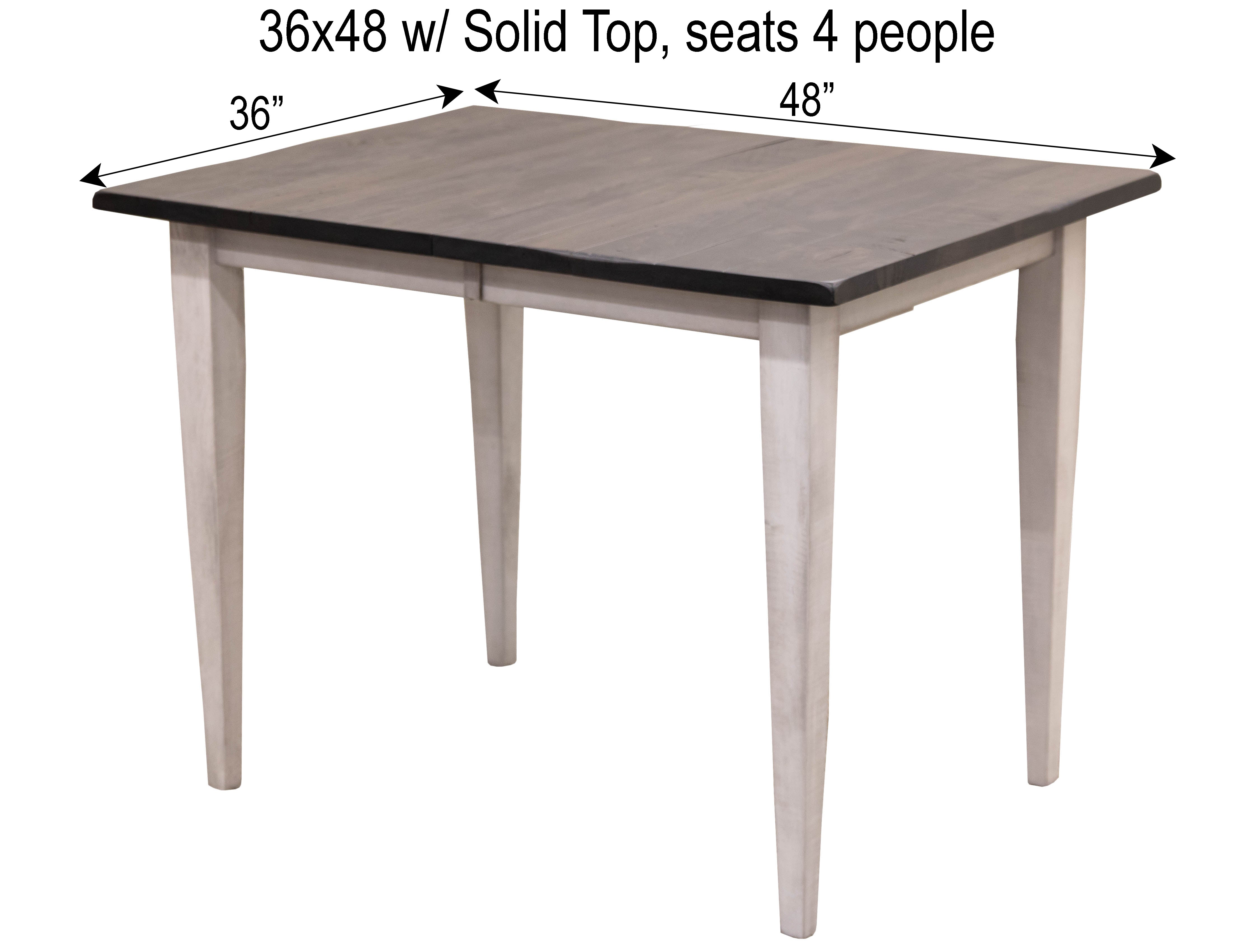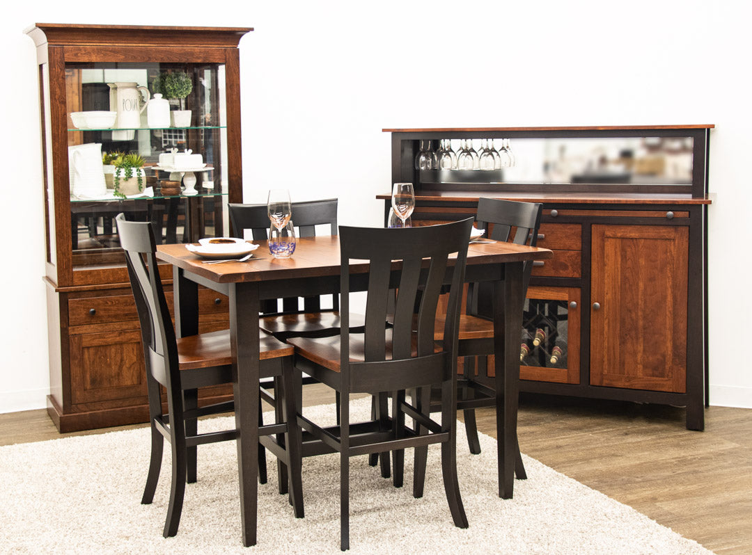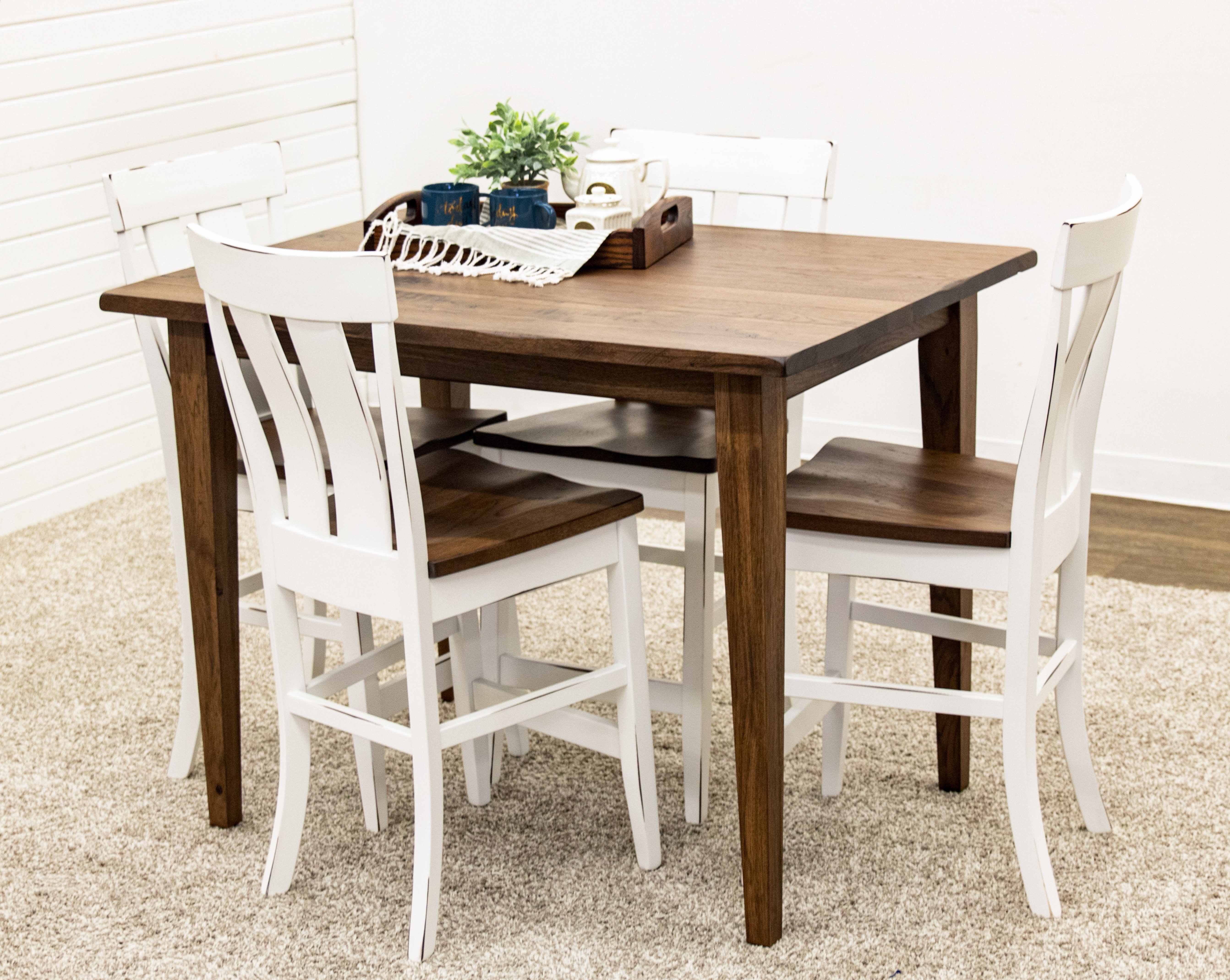 Every dining table is available in your choice of wood type and stain color. Wood options include Red or White Oak, Maple, Cherry, Hickory, Elm, and Walnut wood.