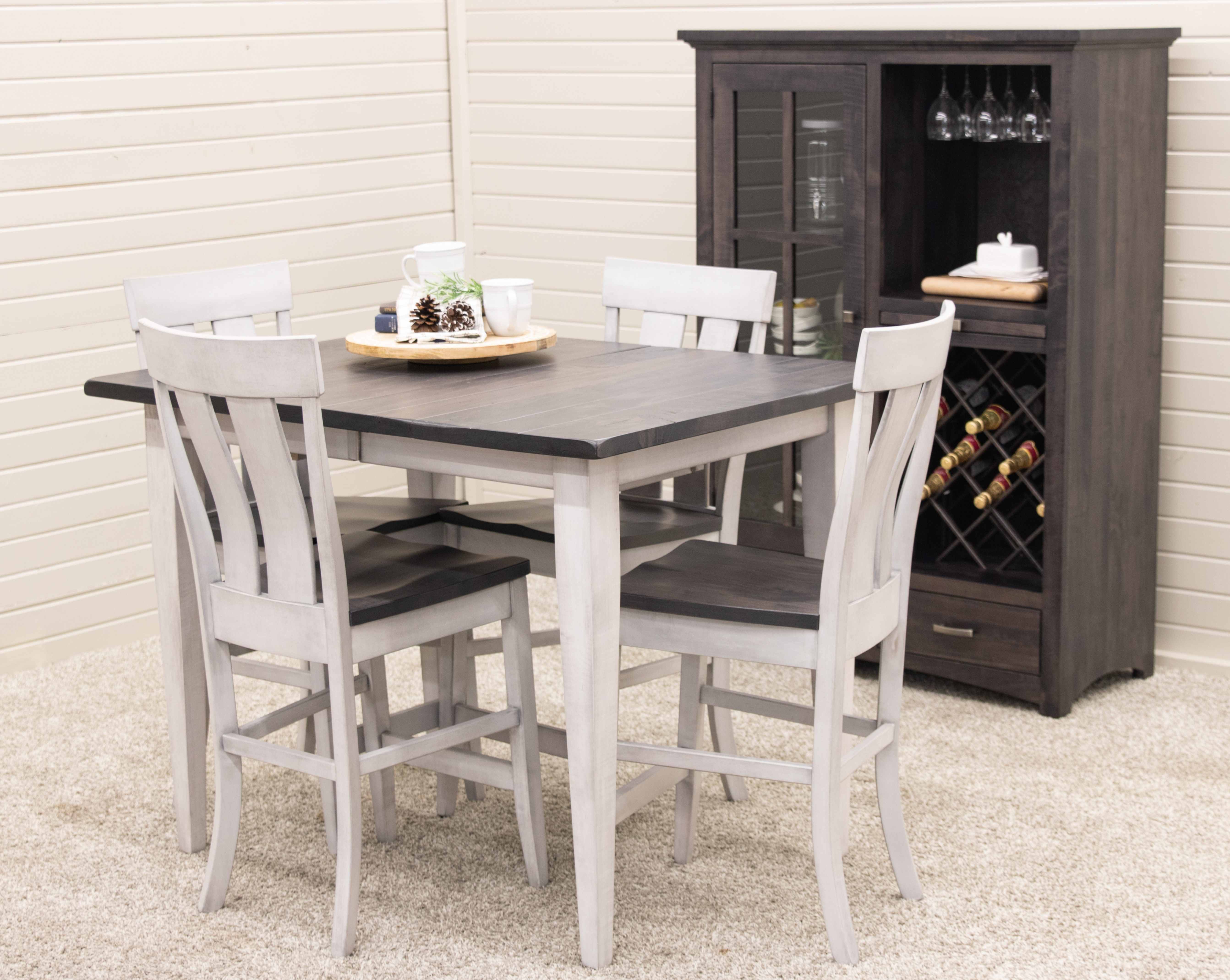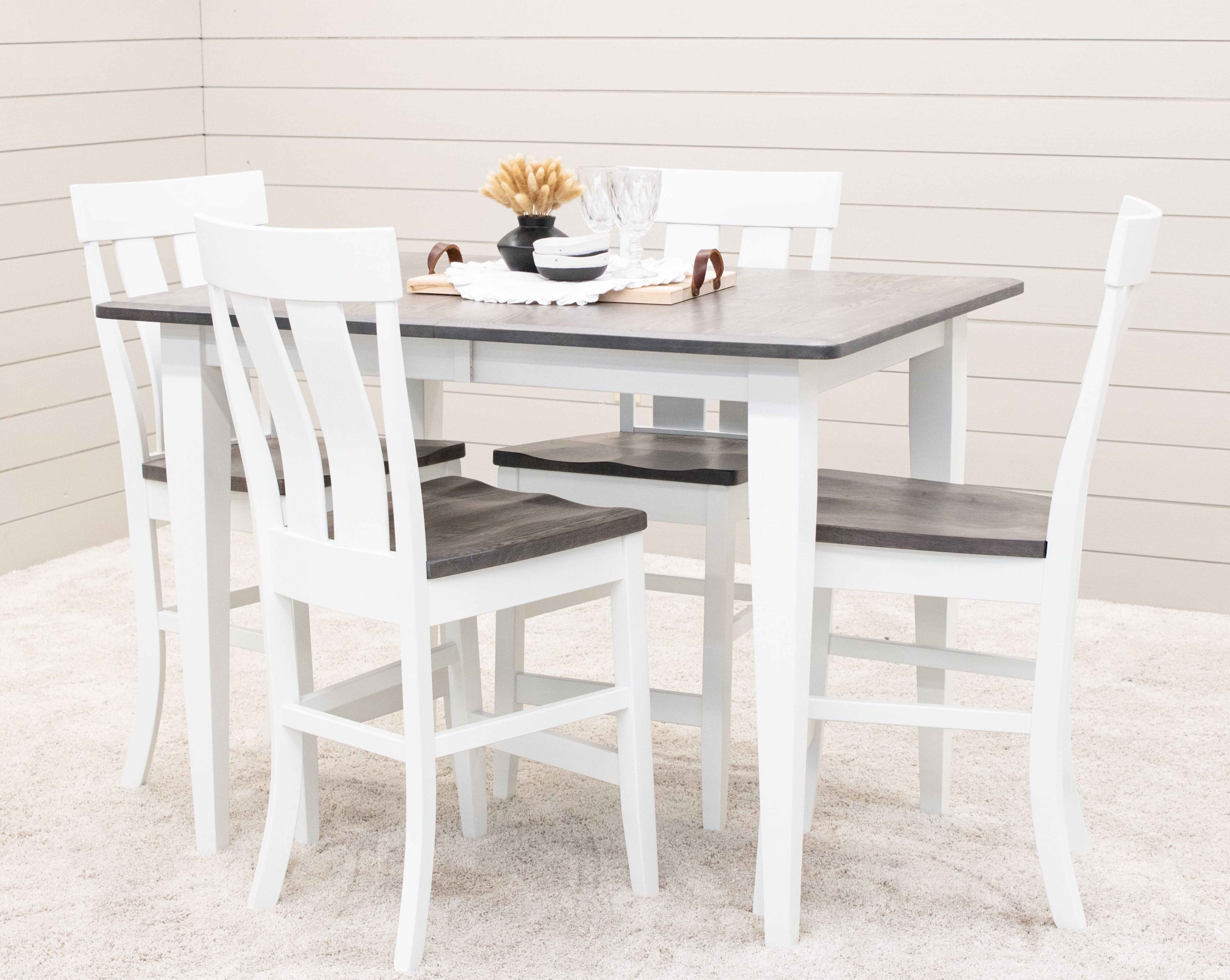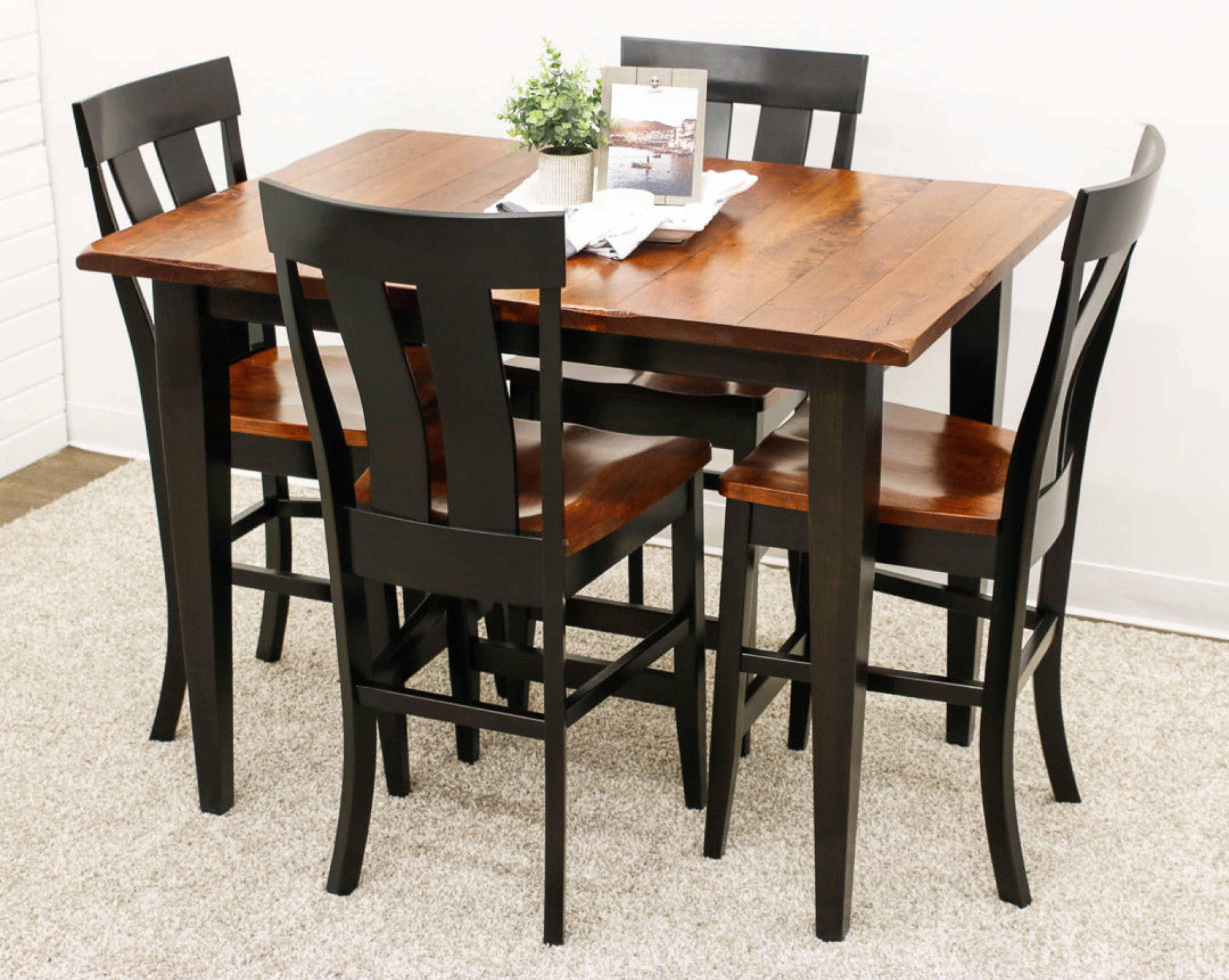 Every dining table is available in your choice of wood type and stain color. Wood options include Red or White Oak, Maple, Cherry, Hickory, Elm, and Walnut wood.