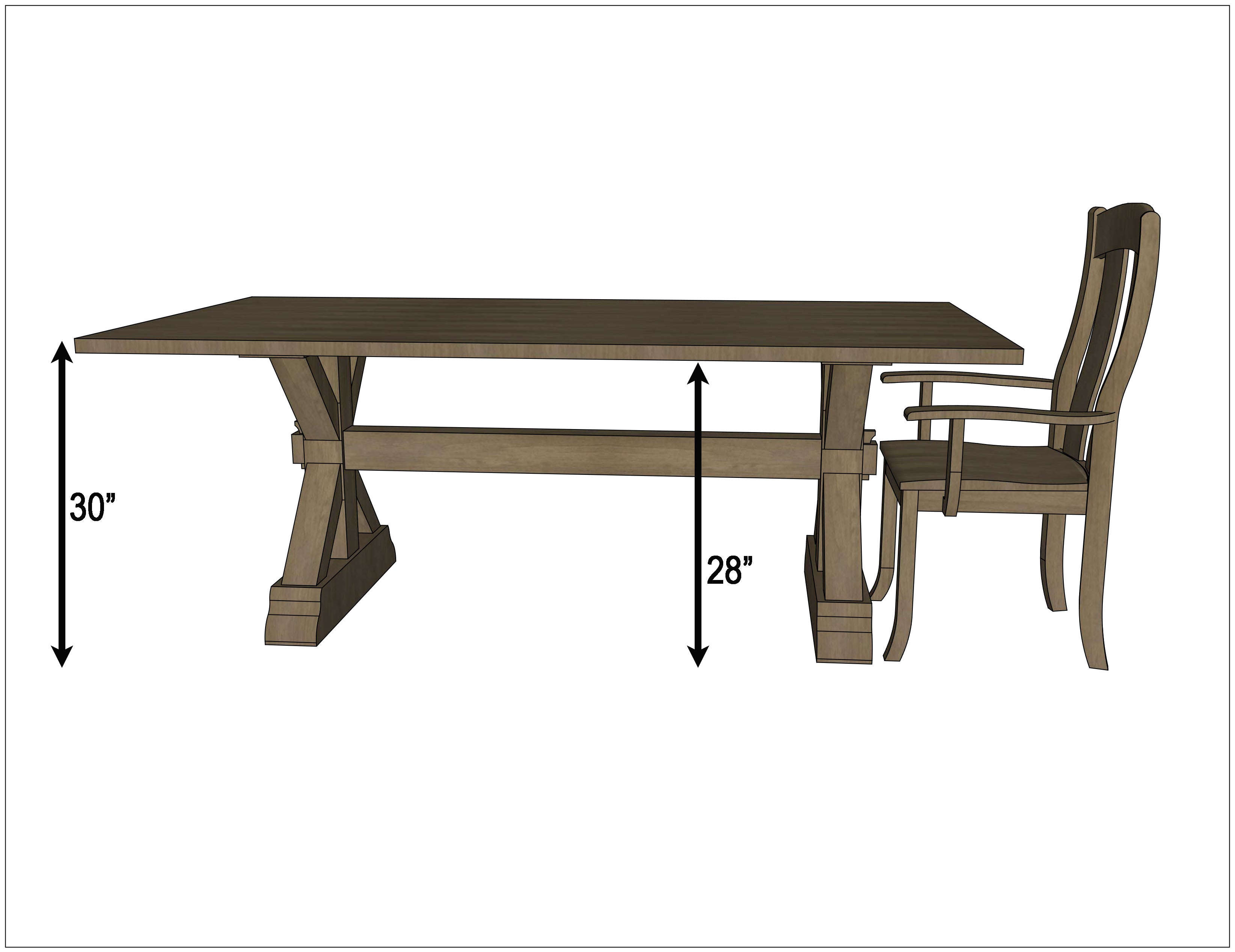 All regular dining tables are approximately 30" high to the top and this dining table is approximately 28" from the floor to the table apron. For more details on this dining table, contact a member of our team.