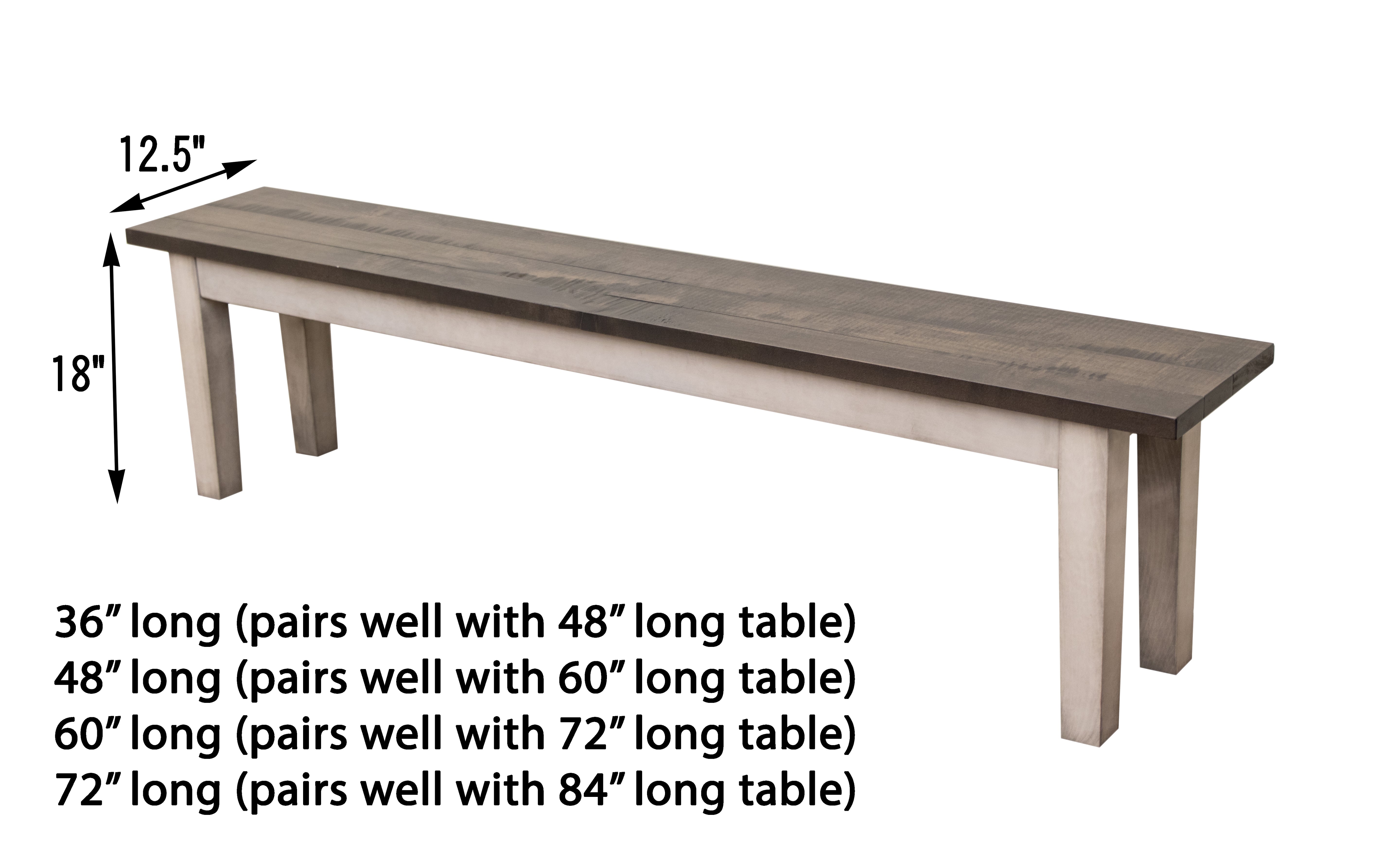 block.WHEN PAIRING A BENCH WITH A TABLE, WE RECOMMEND ORDERING THE BENCH 12" LESS IN LENGTH THAN THE TABLE.