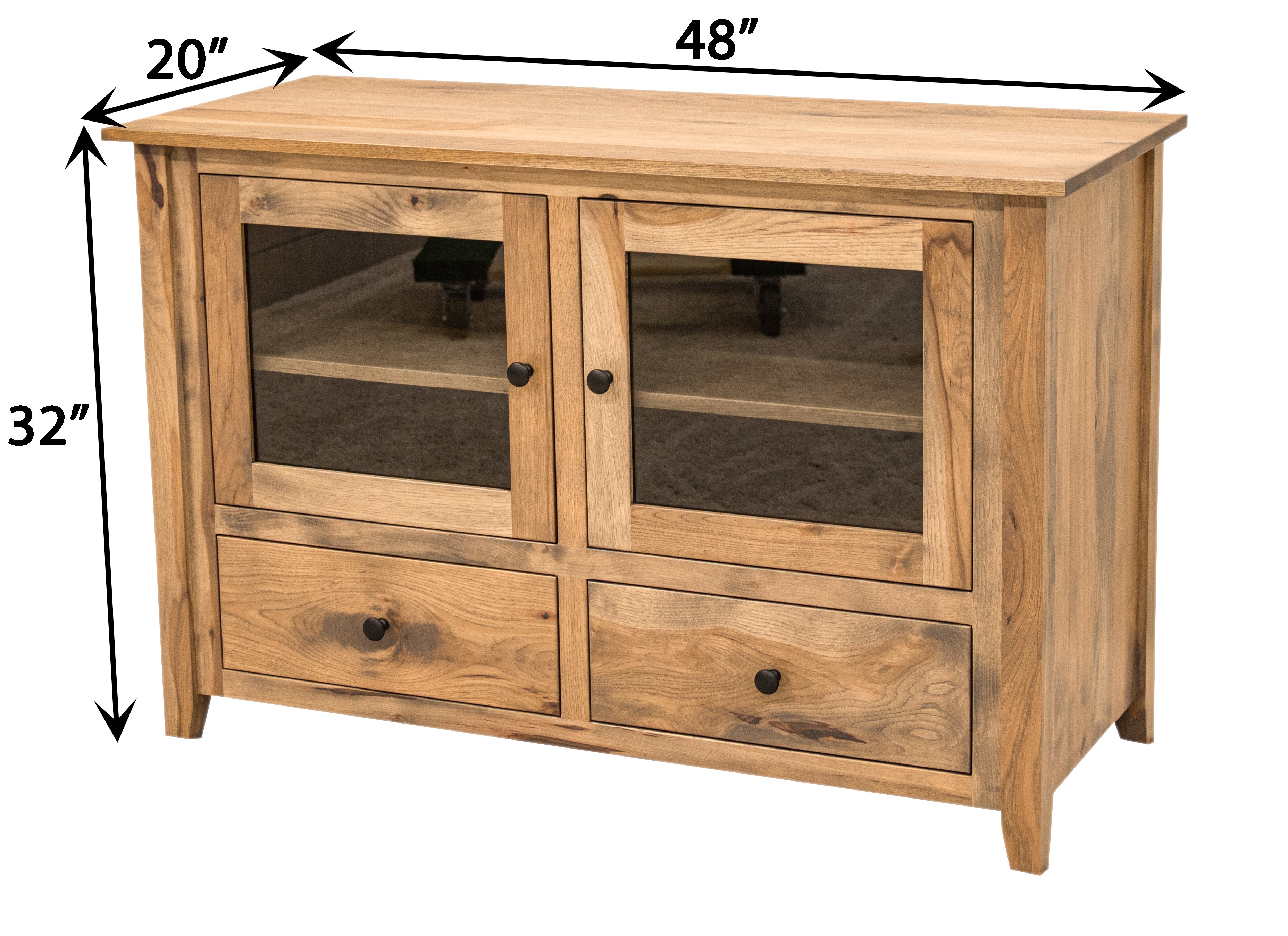 The Riverton TV Console is a classic style, built with solid hardwood. The tv console is handcrafted by Amish artisans and features shaker style construction. Order it in your choice of wood and color. For more details, contact a member of our team.