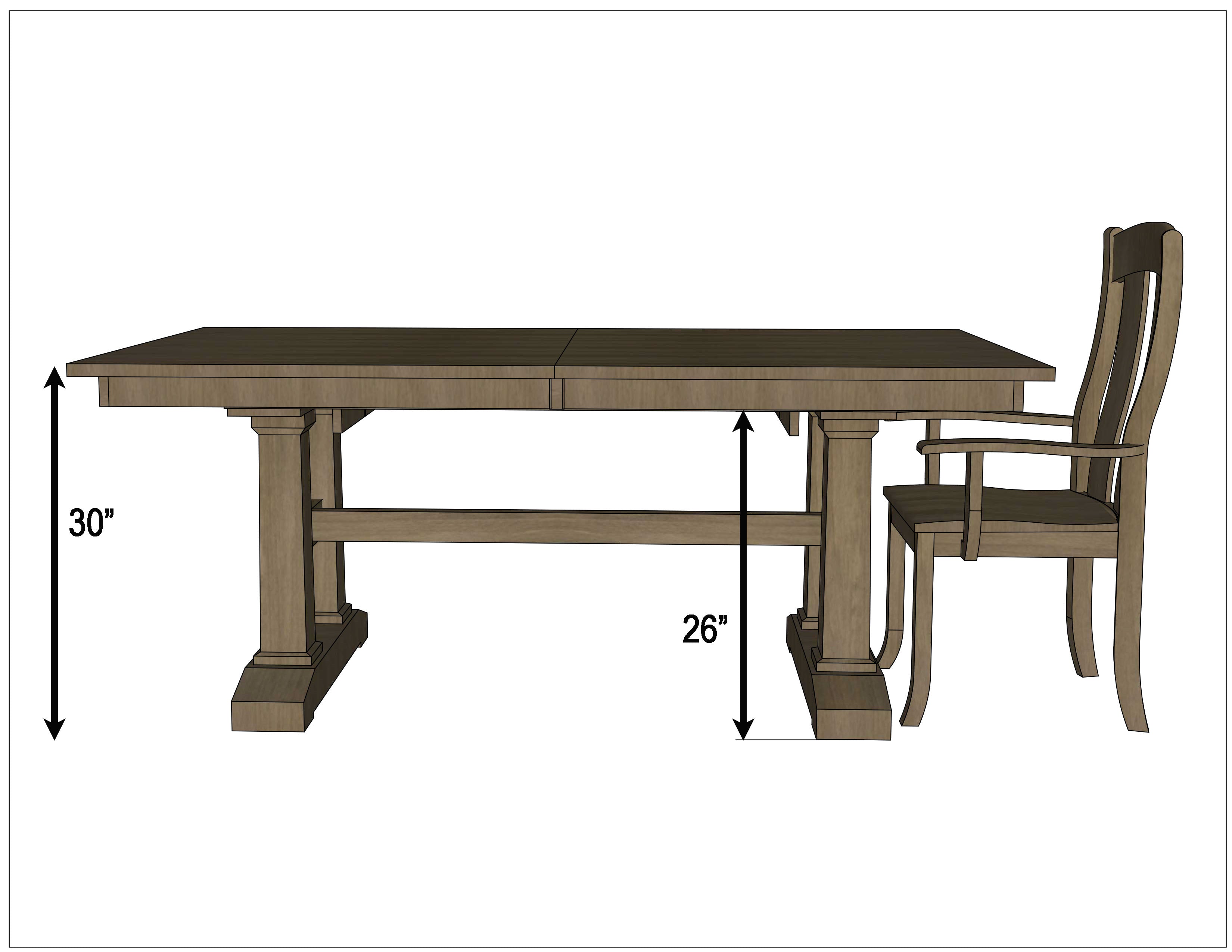 All regular dining tables are approximately 30" high to the top and approximately 26" from the floor to the table apron. For more details on this dining table, contact a member of our team.